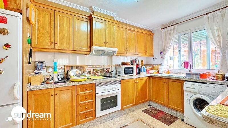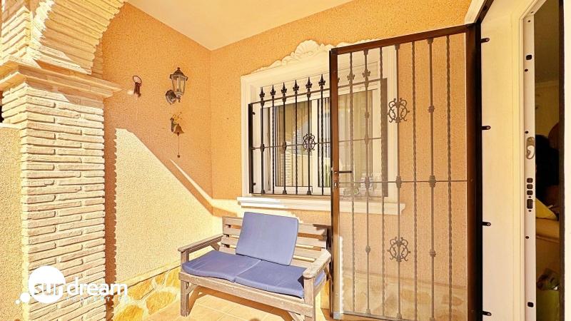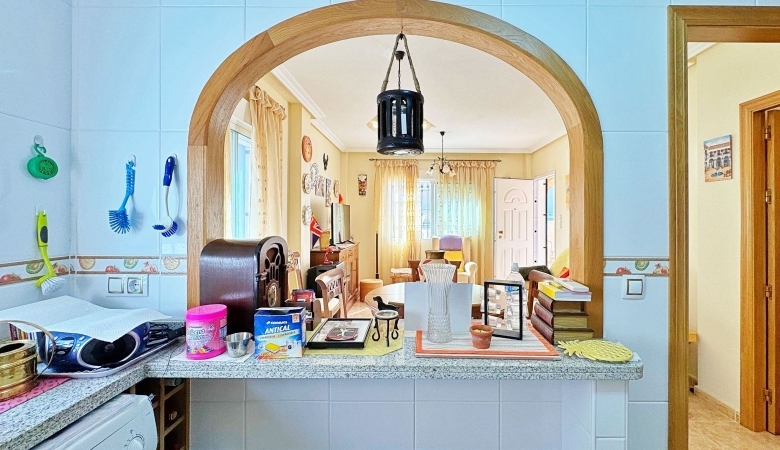 Precioso dúplex tipo quad en esquina situado en la reconocida urbanización Vista Azul, una de las más exclusivas de Villamartin, Orihuela Costa. Esta vivienda combina confort, estilo mediterráneo y una ubicación privilegiada, en un entorno tranquilo y familiar cerca de todos los servicios esenciales.Con 90 m2 construidos sobre una parcela de 120 m2, destaca por su orientación suroeste, que garantiza sol y luminosidad durante todo el año. En la planta baja se encuentra un amplio salón-comedor con acceso directo a la terraza, una cocina independiente totalmente equipada, un dormitorio ideal para invitados o despacho y un baño completo. En la planta superior se ubican dos dormitorios con armarios empotrados, un segundo baño y una escalera que conduce al solárium privado de 20 m2, perfecto para disfrutar del sol, relajarse o contemplar las vistas despejadas.La vivienda está en excelente estado y equipada con aire acondicionado, toldos, puerta de seguridad y aparcamiento privado dentro de la parcela. La amplia terraza que rodea la casa ofrece zonas de comedor y relax al aire libre, ideales para aprovechar el clima mediterráneo durante todo el año.La urbanización Vista Azul ofrece magníficas zonas comunes con dos piscinas (una cubierta), jacuzzi, sauna y gimnasio, lo que la convierte en una de las comunidades más completas y valoradas de Villamartin.Ubicada junto al Campo de Golf Villamartin, cerca de los centros comerciales La Zenia Boulevard y Playa Flamenca, y a solo 3 km de las playas de Orihuela Costa, esta propiedad es ideal para quienes buscan comprar un dúplex en Villamartin o invertir en una vivienda en venta en la Costa Blanca.Una vivienda con encanto, lista para entrar a vivir, perfecta tanto como residencia habitual como para comprar como segunda vivienda o inversión inmobiliaria en Orihuela Costa.