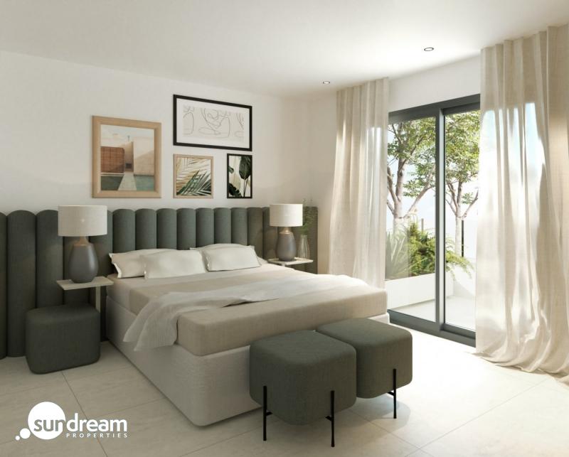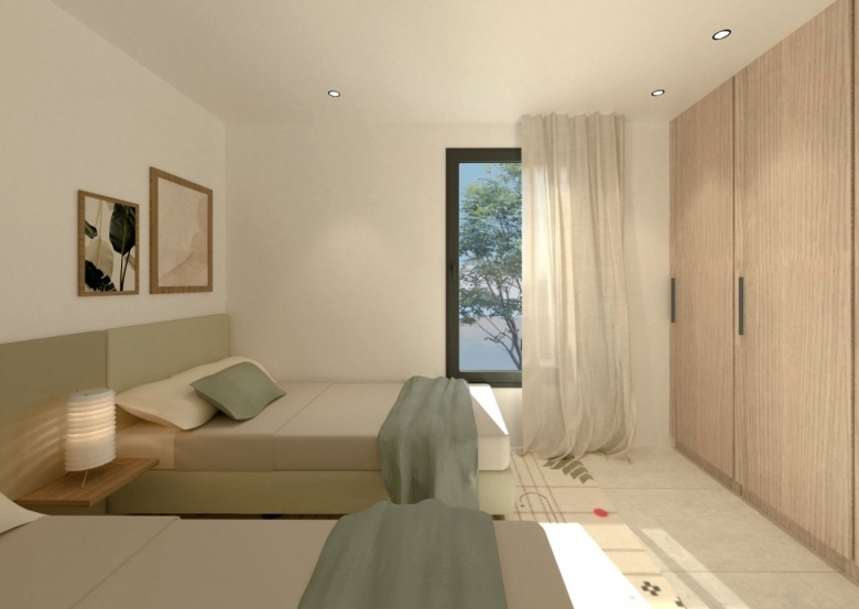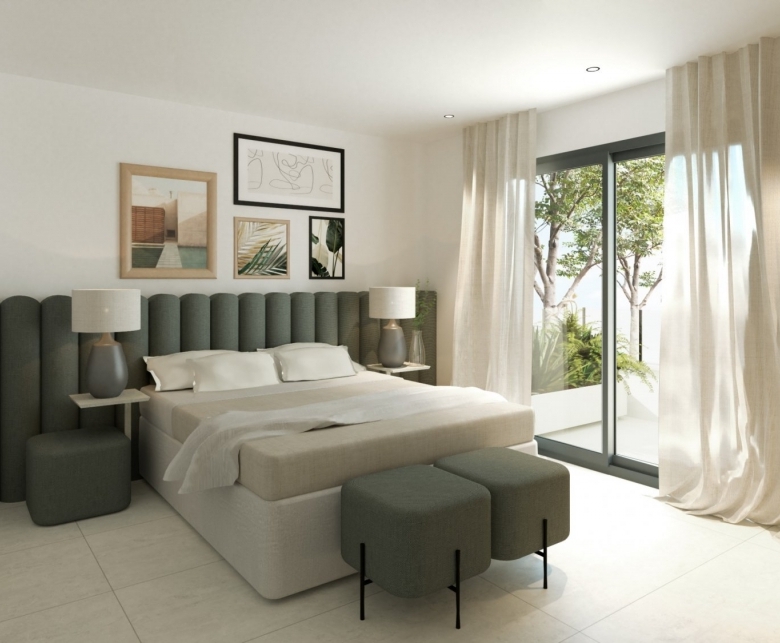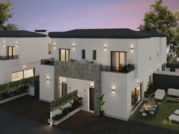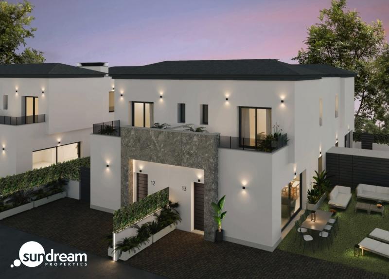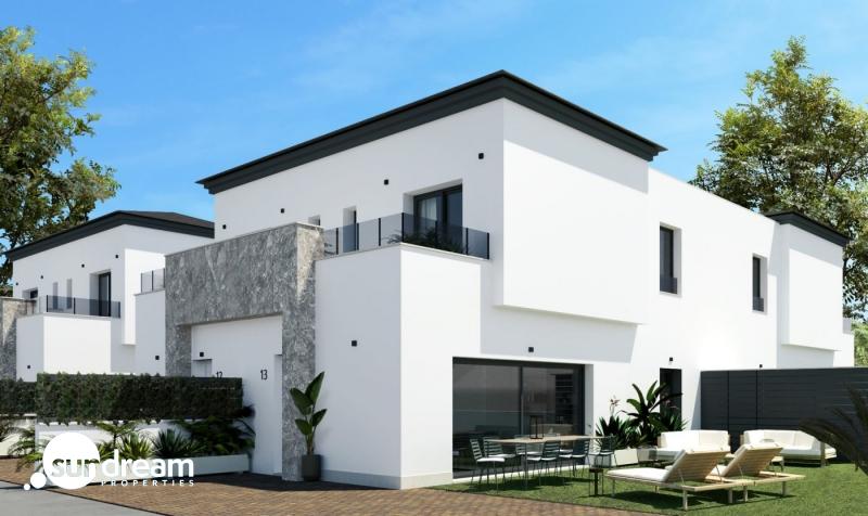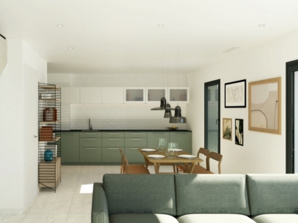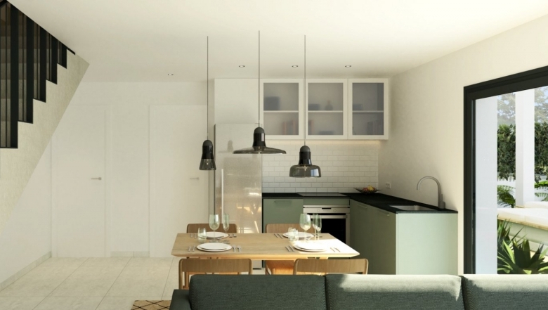 Adosados con 3 dormitorios en Gran Alacant Nueva residencia de diseño moderno con piscina comunitaria y la opción de elegir 2 o 3 dormitorios. La planta baja puede incluir un dormitorio, o en caso de que no haya necesidad de un tercer dormitorio, los metros adicionales se añadirán a la zona de salón-comedor. La cocina está equipada con vitro, extractor de humos y horno. Los baños están totalmente equipados. En la planta superior encontramos 2 dormitorios, ambas con baño en suite y el principal con acceso al balcón . Hay aire acondicionado por conductos en toda la vivienda. La zona exterior incluye aparcamiento, zona de terraza y jardín con césped artificial. Situado cerca del aeropuerto de Alicante y las playas de Arenales del Sol y Carabassi.