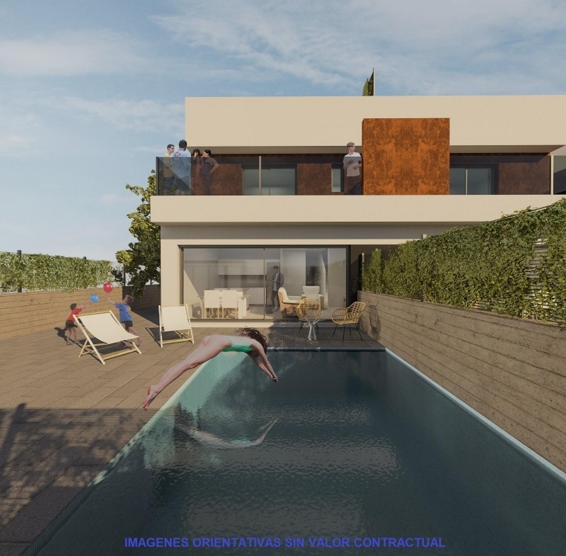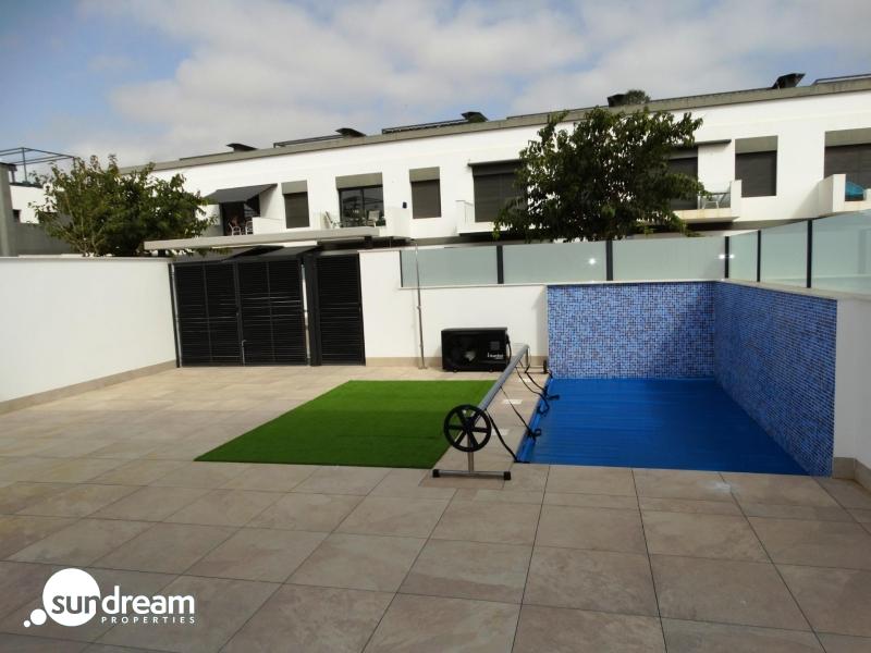 ADOSADOS DE NUEVA CONSTRUCCIÓN EN SANTIAGO DE LA RIBERAPromoción de obra nueva de 11 adosados en Santiago de la Ribera, ¡a 100 metros de la playa! Preciosas viviendas de 3 dormitorios y 3 baños, cocina americana con salón, armarios empotrados, terraza, solarium, jardín privado con piscina y plaza de garaje.A tan sólo 5 minutos andando por el paseo marítimo, junto al club náutico, llegará al centro de Santiago de la Ribera, con todos los servicios a su alcance, mercadillo, bares, restaurantes, heladerías, tiendas, actividades náuticas y todo lo necesario para disfrutar del estilo de vida mediterráneo en el Mar Menor. Santiago tiene un aire moderno, aunque sigue manteniendo su ambiente de “pueblo pesquero”. Tiene un paseo marítimo muy bonito, bordeado por majestuosas palmeras, y 2 kilómetros de maravillosas playas de arena. Desde aquí se puede dar un paseo en barco por las tranquilas aguas del Mar Menor hasta La Manga Strip, en el lado opuesto. La principal zona comercial es realmente en la ciudad de San Javier, pero hay algunas tiendas en las estrechas calles para navegar, trate de visitar un miércoles por la mañana cuando hay un gran mercado de la calle.¡Las villas están a poca distancia de tiendas, bares, restaurantes, centro comercial Dos Mares y las fantásticas playas del Mar Menor y 20 minutos de la popular Zenia Boulevard – todo está a poca distancia!A sólo 30 minutos de la ciudad de Cartagena y el nuevo aeropuerto internacional de Murcia.