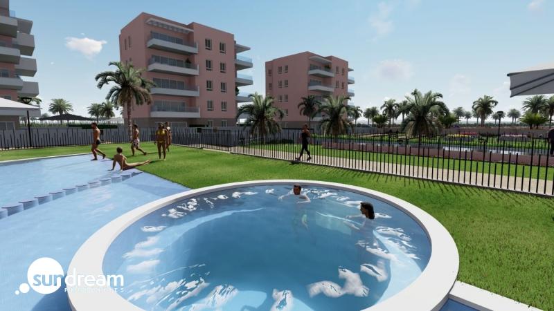 APARTAMENTO A ESTRENAR EN GUARDAMAR DEL SEGURAResidencial de obra nueva de apartamentos de estilo moderno en Guardamar del Segura!Estos apartamentos disponen de 3 dormitorios, 2 baños, salón diáfano con cocina, planta baja con jardín privado, planta media con terraza y planta alta con solarium privado.Complejo con piscina, zonas verdes, greens de golf, Spa, parque infantil, maquinas biosaludables y zonas deportivas.Complejo situado en zona verde cerca del lago salado, todos los servicios, a poca distancia del centro comercial, bares y restaurantes.Guardamar del Segura es un municipio situado en la Costa Blanca Sur. Con sus 11 kilómetros de playa natural y su gran pinar.Guardamar del Segura tiene un gran puerto con actividades durante todo el año, tiene un gran polideportivo con padel, tenis, fútbol y una gran piscina climatizada que funciona todo el año. También tiene una biblioteca donde hay wifi gratuito y ordenadores.Guardamar del Segura se encuentra a tan solo 20km del aeropuerto de Alicante – Elche (El Altet), donde hay numerosos vuelos diarios con conexiones a las principales ciudades europeas, debido a la demanda turística de la Costa Blanca.