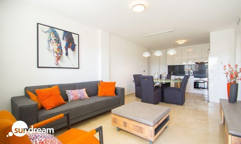 APARTAMENTO DE NUEVA CONSTRUCCIÓN CON 2 DORM EN ORIHUELA COSTA. Coqueto apartamento que consta de 2 dormitorios y 2 baños(uno ensuite), salón-comedor-cocina, terraza y patio. Las vivienda incluyen aire acondicionado por conducto y electrodomésticos en la cocina. La residencia está situada en una zona tranquila y segura y está totalmente equipada (dispone de todas las comodidades posibles). En las inmediaciones encontrará por ejemplo 4 magníficos campos de golf, una gran zona comercial (la Zenia Boulevard), varias playas, supermercados, bares y restaurantes, etc. Es una residencia de lujo, todos los apartamentos y casas son espaciosos y confortables. La residencia dispone de aparcamiento privado y está equipada con ascensores. En el complejo hay una piscina comunitaria (gran piscina, piscina infantil y jacuzzi con agua caliente). También un parque infantil y varios espacios verdes. En resumen: el lugar ideal para descansar y disfrutar de la región, para vivir en España.