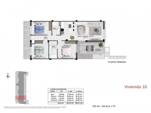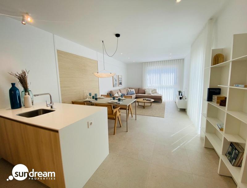 APARTAMENTO DE PLANTA ALTA CON 3 DORM. Y SOLARIUM PRIVADO EN PILAR DE LA HORADADAExclusivos Bungalows Modernos en Pilar de la HoradadaLa vivienda consta de 3 dormitorios y 2 baños(uno de ellos en suite), cocina-salón-comedor, terraza y amplio solarium.Esta nueva promoción ofrece 16 elegantes bungalows en la deseable localidad de Pilar de la Horadada, situada en la parte más meridional de la Costa Blanca. Elija entre 2 o 3 dormitorios, cada uno con 2 baños. Los bungalows de la planta baja disponen de amplias terrazas delanteras y traseras con acceso directo a la piscina y el jardín comunitarios, mientras que los de la planta superior cuentan con un gran solárium privado en la azotea.Vida espaciosa con características modernasCada bungalow incluye un salón-comedor luminoso y abierto y una cocina totalmente equipada con grandes puertas correderas que conectan a la perfección los espacios interiores y exteriores. Los dormitorios cuentan con armarios empotrados. El complejo dispone de aire acondicionado por conductos y ascensor para facilitar el acceso a las plantas superiores. También se incluyen plazas de aparcamiento privado para todas las unidades.Ubicación privilegiada en Pilar de la HoradadaPilar de la Horadada es un pueblo tradicional español con una animada calle principal que ofrece supermercados, tiendas, restaurantes y bares. Las hermosas playas de Torre de la Horadada y Mil Palmeras están a sólo 5 minutos. La urbanización está convenientemente situada a 40 km del aeropuerto de Corvera (Murcia) y a 55 km del aeropuerto de Alicante, por lo que es un lugar ideal tanto para vivir permanentemente como para escapadas vacacionales.