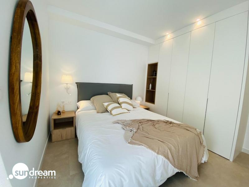APARTAMENTO EN PLANTA BAJA DE 3 DORM. EN PILAR DE LA HORADADAExclusivos Bungalows Modernos en Pilar de la Horadada.La vivienda consta de 3 dormitorios y 2 baños, cocina-salón-comedor y 2 amplias terrazas.Esta nueva promoción ofrece 16 elegantes bungalows en la deseable localidad de Pilar de la Horadada, situada en la parte más meridional de la Costa Blanca. Elija entre 2 o 3 dormitorios, cada uno con 2 baños. Los bungalows de la planta baja disponen de amplias terrazas delanteras y traseras con acceso directo a la piscina y el jardín comunitarios, mientras que los de la planta superior cuentan con un gran solárium privado en la azotea.Vida espaciosa con características modernasCada bungalow incluye un salón-comedor luminoso y abierto y una cocina totalmente equipada con grandes puertas correderas que conectan a la perfección los espacios interiores y exteriores. Los dormitorios cuentan con armarios empotrados. El complejo dispone de aire acondicionado por conductos y ascensor para facilitar el acceso a las plantas superiores. También se incluyen plazas de aparcamiento privado para todas las unidades.Ubicación privilegiada en Pilar de la HoradadaPilar de la Horadada es un pueblo tradicional español con una animada calle principal que ofrece supermercados, tiendas, restaurantes y bares. Las hermosas playas de Torre de la Horadada y Mil Palmeras están a sólo 5 minutos. La urbanización está convenientemente situada a 40 km del aeropuerto de Corvera (Murcia) y a 55 km del aeropuerto de Alicante, por lo que es un lugar ideal tanto para vivir permanentemente como para escapadas vacacionales.