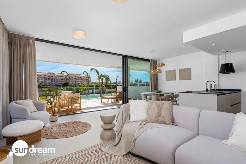 Apartamento en primera planta de 3 dormitorios en Mar de Cristal(Cartagena) Apartamento de 3 dormitorios y 2 baños con terraza, ubicado en moderno complejo residencial de apartamentos y áticos de nueva construcción listos para entregar y situado muy cerca del paseo marítimo y de las largas y bonitas playas de arena de Mar de Cristal. Los apartamentos tienen un diseño moderno, presentando una zona de estar de planta abierta, que combina la cocina, el comedor y el salón, en un gran espacio con acceso a la terraza. El dormitorio principal tiene un baño privado. Construidos con acabados de primera calidad, armarios empotrados, preinstalación de aire acondicionado por conductos, un trastero y una plaza de aparcamiento subterráneo. Todas las necesidades diarias, como supermercados, bares y restaurantes, están disponibles todo el año y se encuentran cerca del complejo. Mar de Cristal tiene hermosas playas de arena, un centro de tenis, puerto deportivo, supermercados, bares y restaurantes. El parque nacional de Calblanque, donde encontrará largas playas vírgenes de arena blanca, así como el famoso La Manga Club y la bulliciosa ciudad de Los Belones están a 5 minutos en coche de la villa. El aeropuerto de Murcia está a 25 minutos y el de Alicante a 1 hora en coche. También puede visitar las ciudades históricas de Cartagena y Murcia.