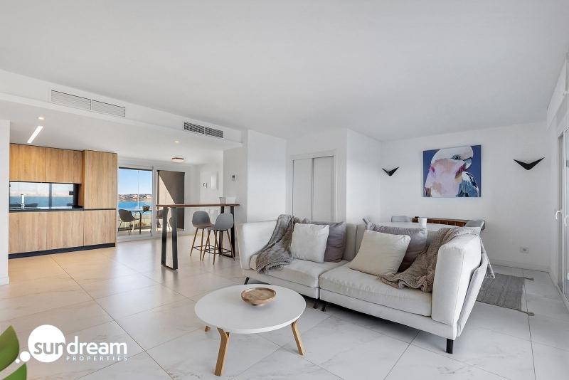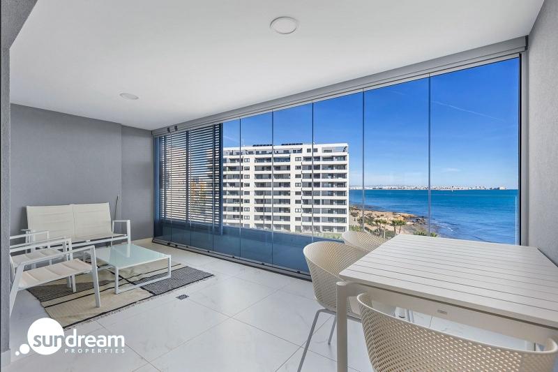 Este exclusivo apartamento en quinta planta se ubica en el prestigioso residencial Posidonia, en primera línea de mar en Punta Prima. Originalmente proyectado con tres dormitorios, la vivienda fue modificada sobre plano para ofrecer 94 m2 de puro confort, distribuidos ahora en dos amplios dormitorios y dos baños, ganando así una amplitud excepcional en las zonas de día.Su punto fuerte es la doble orientación y sus espacios exteriores: una terraza de 16m2 con vistas despejadas al mar y la bahía de Torrevieja, y una segunda terraza trasera de 12m2 con orientación sur y vistas hacia La Manga, garantizando sol, luz natural y ventilación cruzada durante todo el día.La propiedad se entrega totalmente amueblada, con plaza de garaje subterránea y trastero incluidos. El complejo cuenta con zonas comunes de alto standing y seguridad. Ubicado a pie de servicios, supermercados y calas, se encuentra a aproximadamente 45 minutos del Aeropuerto de Alicante, conectando lujo y comodidad en una de las zonas más demandadas de la Costa Blanca.