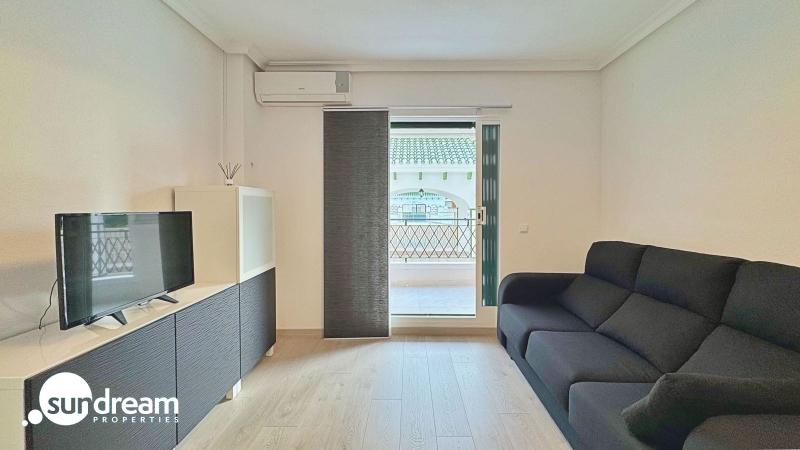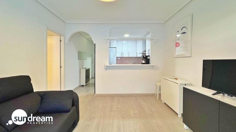 A tan solo 200 metros de la playa de La Mata, en Torrevieja, se encuentra este precioso apartamento en venta, completamente reformado con materiales de alta calidad y un diseño moderno y funcional. La vivienda, situada en la urbanización Viñamar V, cuenta con 1 dormitorio, 1 baño, una superficie interior de 45 m2 y una amplia terraza de 12 m2 orientada al sur, ideal para disfrutar del sol durante todo el año. La terraza dispone de toldos, creando un espacio perfecto para relajarse al aire libre con privacidad y confort.Este apartamento se vende totalmente amueblado y equipado con electrodomésticos, aire acondicionado y sistema de alarma, listo para entrar a vivir o comenzar a rentabilizar desde el primer día. Incluye además una plaza de garaje privada, un valor añadido muy apreciado en esta zona costera de alta demanda.Ubicado dentro de una urbanización cerrada con piscina comunitaria y zonas comunes cuidadas, ofrece seguridad, tranquilidad y un entorno perfecto tanto para residencia habitual como para vacaciones. En los alrededores se encuentran todos los servicios necesarios: supermercados, restaurantes, farmacias, transporte público y zonas de ocio.Gracias a su excelente ubicación junto al mar, su equipamiento completo y su alto potencial de inversión, esta propiedad representa una magnífica oportunidad para comprar un apartamento en La Mata, Torrevieja, ideal tanto como vivienda permanente como inversión en alquiler vacacional o de larga estancia.