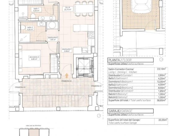 Apartamento en venta con garaje Hondón de las Nieves. Apartamento moderno de 2 dormitorios a la venta en Hondón de las NievesLa vivienda consta de 2 dormitorios, 2 baños( uno de ellos en suite), salón-comedor-cocina, 2 balcones y garaje privado. Estos elegantes apartamentos de nueva construcción se ubican en un apacible valle en Hondón de las Nieves.Descubra estos modernos apartamentos en Hondón de las Nieves, una encantadora localidad enclavada en un pintoresco valle rodeado de olivares y almendros. Este exclusivo complejo residencial ofrece apartamentos de 1, 2 y 3 dormitorios, todos ellos diseñados para proporcionar confort, eficiencia energética e impresionantes vistas a los viñedos del Vinalopó.Situada en la comarca del Vinalopó Medio, esta tranquila zona es perfecta para quienes buscan un estilo de vida mediterráneo relajado con fácil acceso a la naturaleza y a los servicios esenciales.Características de alta calidad para una vida modernaCada apartamento está construido con materiales y acabados de primera calidad, garantizando tanto estilo como funcionalidad:Amplios interiores con distribuciones diáfanas.Cocinas totalmente amuebladas con encimeras de granito.Baños de alta gama con cisternas empotradas y sanitarios de primera calidad.Diseño energéticamente eficiente con calefacción de agua por aerotermia.Preinstalación de aire acondicionado por conductos para mayor comodidad durante todo el año.Ventanas de aluminio con doble acristalamiento y aislamiento térmico.Puerta de entrada de seguridad reforzada para mayor tranquilidad.Garaje privado en la planta baja incluido.Acceso en ascensor para mayor comodidad.Además, los paneles solares están instalados en la azotea para mejorar la eficiencia energética y reducir los costos de servicios públicos.Ubicación privilegiada en Hondón de las NievesHondón de las Nieves es un encantador pueblo español conocido por su producción de vino, su cultura tradicional y sus paisajes pintorescos. La ciudad cuenta con edificios históricos, mercados locales y senderos naturales, por lo que es un lugar fantástico tanto para la vida permanente y retiros de vacaciones.Esta nueva promoción está situada en una zona tranquila pero bien comunicada, que ofrece fácil acceso a servicios esenciales y lugares clave:Aeropuerto de Alicante – 30 km (30 minutos en coche)Playas de Alicante – 35 km (35 minutos en coche)Elche – 20 km (20 minutos en coche)Parque Natural de Crevillente – 10 km (15 minutos en coche)Campos de Golf – 25 km (30 minutos en coche)Su hogar perfecto en el corazón de la campiña alicantinaDisfrute de la tranquilidad del Valle del Hondón mientras permanece cerca de las vibrantes ciudades de Alicante y Elche. Tanto si busca una casa de vacaciones, una inversión inmobiliaria o un lugar tranquilo para vivir todo el año, estos modernos apartamentos son la elección perfecta.Póngase en contacto con nosotros hoy mismo para obtener más información o para concertar una visita.