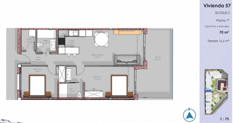 Apartamento moderno amueblado con 2 dormitorios en complejo redidencial de GuardamarExclusiva promoción residencial en Guardamar del SeguraDescubra esta excepcional promoción de obra nueva de 120 elegantes apartamentos situada en El Raso, una zona muy cotizada de Guardamar del Segura, en la Costa Blanca. Rodeado de paisajes naturales y cerca de la costa mediterránea, este complejo residencial ofrece un equilibrio perfecto entre tranquilidad y accesibilidad. El Raso es conocido por su entorno tranquilo, a la vez que se encuentra a solo unos minutos del animado centro de la ciudad, de las playas de arena y de una amplia gama de servicios, incluyendo restaurantes, tiendas e instalaciones de ocio.Viviendas contemporáneas diseñadas para ofrecer comodidad y estiloLa promoción ofrece apartamentos de 2 y 3 dormitorios con diferentes distribuciones para adaptarse a cada estilo de vida. Elija entre viviendas en planta baja con jardines privados, apartamentos en plantas intermedias con amplias terrazas o áticos con soláriums privados, ideales para disfrutar del clima mediterráneo durante todo el año. Todas las viviendas se entregan totalmente amuebladas y listas para entrar a vivir, incluyendo cocinas totalmente equipadas con electrodomésticos y cuartos de baño completos con muebles, espejos y mamparas de ducha.Cada vivienda incluye además aparcamiento subterráneo y un trastero, lo que garantiza comodidad y practicidad desde el primer día.Características de alta calidad y vida energéticamente eficienteEstas modernas viviendas se han construido prestando atención al detalle y se han diseñado para ofrecer el máximo confort. Entre sus características se incluyen aire acondicionado por conductos, persianas eléctricas y un paquete completo de iluminación. La combinación de materiales de calidad y un diseño inteligente crea espacios habitables luminosos y funcionales que mejoran la vida cotidiana al tiempo que garantizan la eficiencia energética.Excelentes zonas comunes y servicios para el estilo de vidaEl complejo residencial ofrece una amplia gama de instalaciones comunes de primera calidad diseñadas para el descanso y el bienestar. Los residentes pueden disfrutar de una gran piscina rodeada de jardines paisajísticos, un gimnasio totalmente equipado, un spa interior, una zona de petanca y un parque infantil. Se ha cuidado cada detalle para crear una comunidad donde se unen el confort, el ocio y la vida social.Ubicación privilegiada con excelentes conexionesEl Raso goza de una ubicación estratégica cerca de los principales puntos de interés:Centro de Guardamar a 4 kmPlaya de Moncayo a 5 kmCiudad Quesada a 5 kmTorrevieja y el centro comercial Habaneras a 8 kmLa Marquesa Golf a 6 kmLa Finca Golf a 12 kmVistabella Golf a 18 kmAeropuerto de Alicante a 30 kmAeropuerto de Murcia-Corvera a 75 kmTu hogar ideal o inversión en la Costa BlancaTanto si buscas una residencia permanente, una vivienda vacacional o una oportunidad de inversión inteligente, estos apartamentos totalmente amueblados en Guardamar del Segura ofrecen una relación calidad-precio excepcional en una ubicación costera privilegiada. Ponte en contacto con nosotros hoy mismo para recibir más información o concertar una visita y asegurarte tu nuevo hogar en la Costa Blanca.