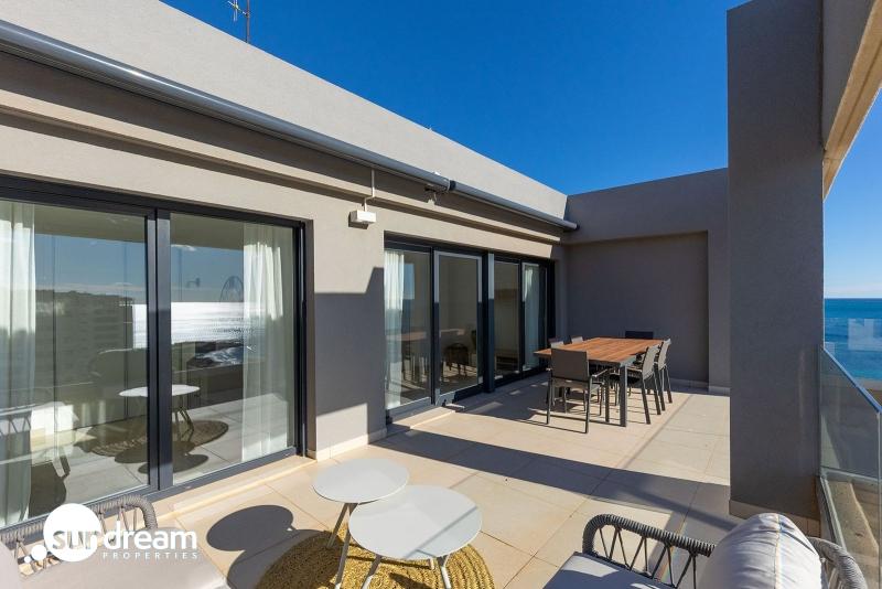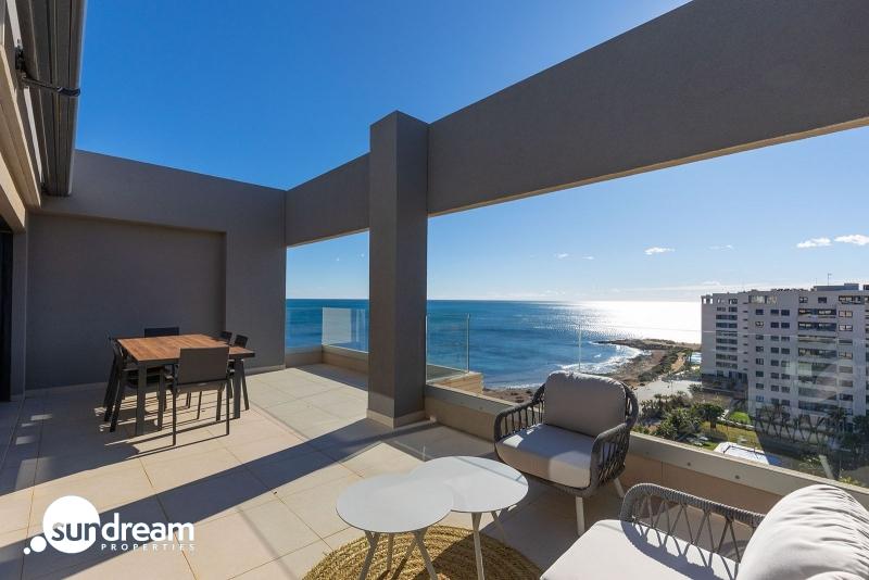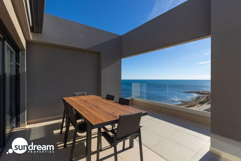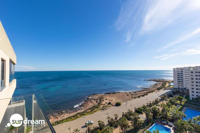 Presentamos este magnífico ático de 3 dormitorios y 2 baños con 139 m2, ubicado en el prestigioso residencial Panorama Mar, uno de los complejos más modernos y valorados de Punta Prima. Situado en primera línea, ofrece impresionantes vistas abiertas al Mediterráneo y un entorno privilegiado para quienes buscan calidad, confort y exclusividad junto al mar.La vivienda cuenta con una amplia y luminosa terraza de 28 m2 orientada al sur, perfecta para disfrutar del sol durante todo el día, así como de la brisa marina y de unas vistas panorámicas incomparables. Su distribución interior es moderna y funcional, con estancias espaciosas, llenas de luz natural y diseñadas para maximizar el confort.El ático incluye plaza de parking subterráneo y trastero, proporcionando comodidad adicional y espacio extra de almacenamiento.Panorama Mar es un moderno complejo en primera línea que destaca por sus amplias piscinas, incluyendo una piscina climatizada, zonas ajardinadas y áreas de relax con vistas al mar. Ofrece un ambiente exclusivo, seguro y cuidado, ideal para disfrutar del estilo de vida mediterráneo durante todo el año.Ubicado en una de las zonas más privilegiadas de la Costa Blanca, Punta Prima combina tranquilidad y servicios. La propiedad se encuentra a pocos pasos de la playa y está rodeada de restaurantes, supermercados y opciones de ocio, además de estar muy cerca de Zenia Boulevard y varios campos de golf de prestigio.