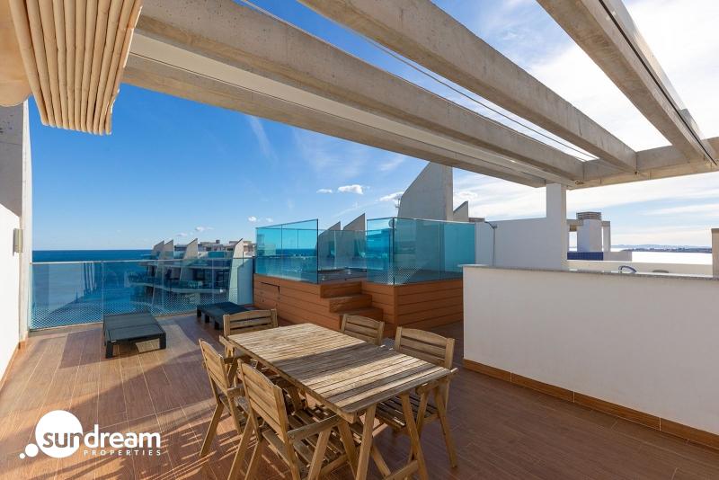 Presentamos este impresionante ático de lujo ubicado en el exclusivo residencial Sea Senses, uno de los complejos más demandados de Punta Prima. Con una inmejorable orientación sureste y vistas panorámicas al Mediterráneo, esta propiedad ofrece un estilo de vida privilegiado junto al mar. La vivienda cuenta con 2 dormitorios y 2 baños, distribuidos de forma moderna y funcional para garantizar el máximo confort. Desde luminoso salon se abre a una encantadora terraza de 12 m2, perfecta para disfrutar del amanecer y de la brisa marina. El mayor atractivo de este ático es su espectacular solárium privado de 83 m2, equipado con jacuzzi y zonas de relax, un auténtico oasis privado con vistas infinitas al mar, ideal para disfrutar del clima mediterráneo durante todo el año. La propiedad incluye plaza de parking subterráneo y trastero, aportando comodidad y espacio adicional de almacenamiento. El residencial Sea Senses es uno de los complejos más prestigiosos de la Costa Blanca Sur. Ofrece zonas comunes de primer nivel, con piscinas infinitas frente al mar, gimnasio, spa, jacuzzis, pistas deportivas y áreas ajardinadas. Un entorno diseñado para disfrutar de privacidad, lujo y bienestar. Situado en la reconocida zona de Punta Prima, este ático se encuentra a pocos pasos de la playa y rodeado de servicios durante todo el año: supermercados, restaurantes, cafeterías, transporte público y zonas de ocio. Además, está a corta distancia de centros comerciales como Zenia Boulevard, prestigiosos campos de golf y los principales accesos a las ciudades de Torrevieja y Orihuela Costa. Una vivienda única, donde la exclusividad, el confort y las vistas al mar se combinan para ofrecer una experiencia de vida inigualable.