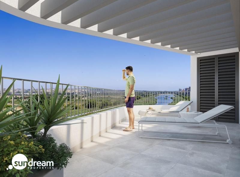 Ático en venta obra nueva con garaje en Guardamar. Ático en venta obra nueva con garaje en Guardamar: vistas, diseño y exclusividad en la Costa Blanca. La Costa Blanca continúa consolidándose como uno de los destinos más atractivos para adquirir vivienda de obra nueva, y el ático que presenta hoy Sundream Properties en Guardamar del Segura reúne todos los elementos que buscan tanto los compradores nacionales como internacionales: ubicación, exclusividad, servicios, diseño contemporáneo y plaza de garaje incluida. Situado en un exclusivo edificio de solo nueve viviendas, este ático de 3 dormitorios y dos baños destaca por su terraza privada y un amplio solárium de 78 m², desde el que se disfrutan unas impresionantes vistas abiertas al río Segura y a la Vega Baja. Se trata de una opción ideal para quienes desean una residencia luminosa, moderna y en una zona en plena expansión, a menos de 1,5 km del mar.