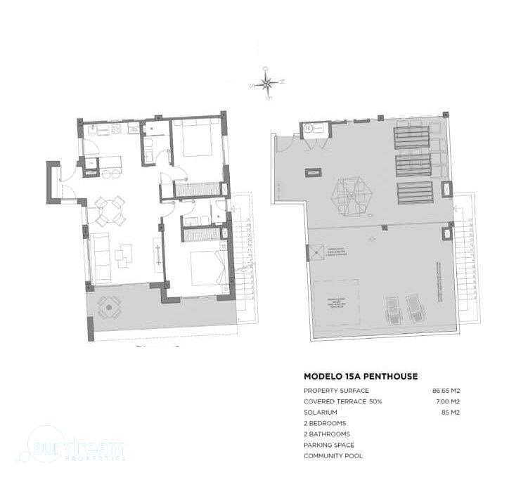 2 dormitorios y 2 baños (uno en suite) Cocina abierta con electrodomésticos integrados Salón-comedor con acceso a terraza Terraza cubierta y amplio solárium privado Plaza de garaje incluida Climatización por conductos y materiales sostenibles Comunidad cerrada con piscina y jardines