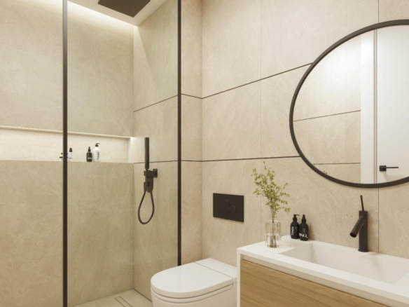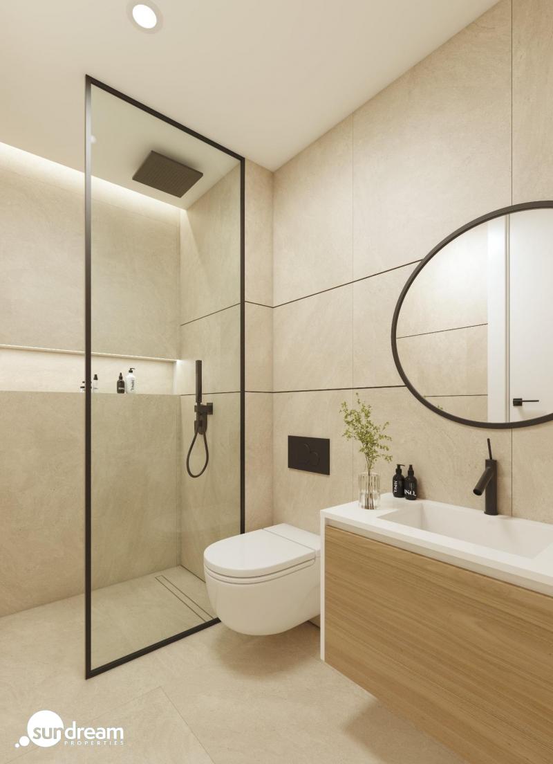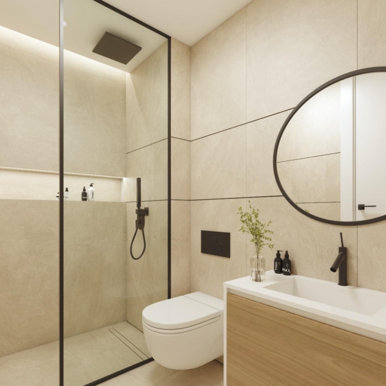 2 baños modernos, uno de ellos en suite, con acabados de alta calidad