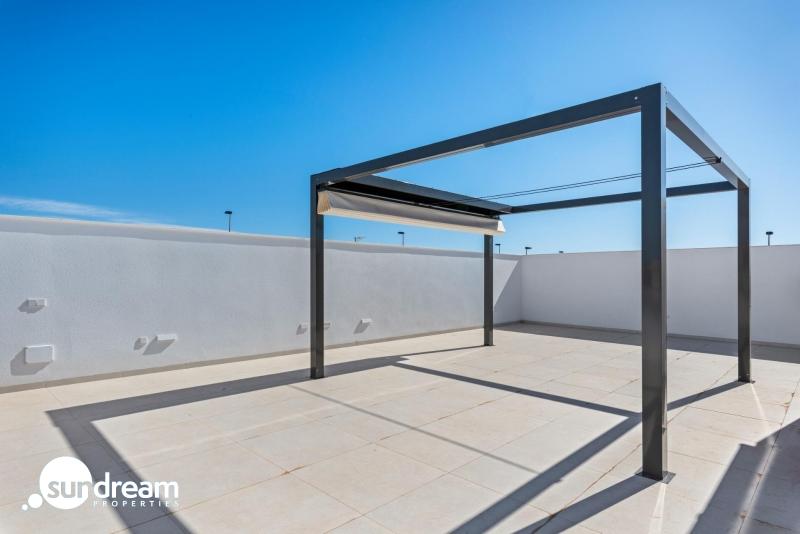 Ático de 3 dormitorios con solarium privado Pilar de la Horadada, Costa BlancaVida mediterránea moderna cerca de la playaLa vivienda cuenta con 3 dormitorios y 2 baños, uno de ellos en suite, cocina-comedor-salón, terraza y gran solarium. Diseñados con líneas modernas y acabados de alta calidad para garantizar el máximo confort.Descubra esta exclusiva promoción de solo 8 viviendas contemporáneas en Pilar de la Horadada, situada a poca distancia del centro de la ciudad y a solo 3,5 km de las hermosas playas de Torre de la Horadada y Mil Palmeras. Esta encantadora localidad costera, situada en el extremo sur de la Costa Blanca, es conocida por su ambiente relajado, su encanto tradicional español y sus excelentes servicios. Los residentes disfrutan de una amplia gama de servicios, como supermercados, restaurantes, tiendas y zonas de ocio, todo ello a solo unos minutos.Viviendas elegantes diseñadas para ofrecer comodidad y estiloLa promoción ofrece una selección de apartamentos en planta baja con terrazas frontales y jardines privados, o apartamentos en la última planta con amplias terrazas y soláriums privados. .El complejo residencial cuenta con una piscina comunitaria rodeada de jardines, lo que crea un ambiente acogedor y tranquilo para el descanso y el ocio. Cada propiedad incluye también una plaza de aparcamiento privada y un trastero.Acabados de alta calidad y prestaciones premiumEstas viviendas de nueva construcción han sido construidas con materiales de primera calidad y atención al detalle. Las especificaciones clave incluyen:Carpintería exterior de aluminio en gris antracita con rotura de puente térmico (marca CORTIZO)Acristalamiento cuádruple con protección solarPersianas eléctricas de aluminio en los dormitoriosInodoros suspendidos y duchas a ras de suelo con suelo integradoMuebles de baño con espejos retroiluminados por LED y toalleros eléctricosCocina totalmente equipada con electrodomésticos MieleIluminación LED interior y exterior en toda la viviendaInstalación completa de aire acondicionado por conductos (sistema Fujitsu)Ubicación perfecta en la Costa BlancaPilar de la Horadada tiene una ubicación ideal tanto para vivir como para pasar las vacaciones. La localidad combina lo mejor de la vida tradicional española con unas infraestructuras modernas y la proximidad al mar.Distancias principales:Playas de Torre de la Horadada y Mil Palmeras: 3,5 kmCampo de golf Lo Romero: 6 kmAeropuerto de Murcia-Corvera: 40 kmAeropuerto de Alicante: 55 kmPuerto deportivo de San Pedro del Pinatar: 10 kmSu nuevo hogar bajo el sol le esperaDisfrute de la combinación perfecta de diseño, comodidad y estilo de vida mediterráneo en estas viviendas de nueva construcción en Pilar de la Horadada. Tanto si busca un refugio para las vacaciones como una residencia para todo el año, este exclusivo proyecto ofrece el equilibrio ideal entre calidad, ubicación y vida moderna.Póngase en contacto con nosotros hoy mismo para obtener más información o concertar una visita.