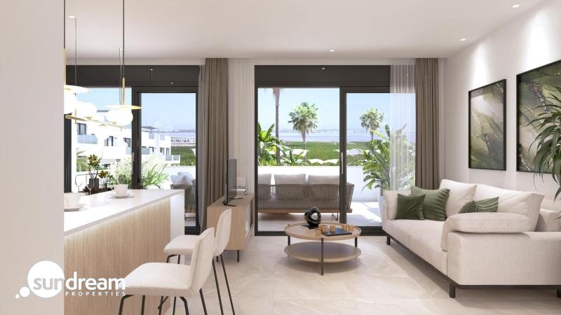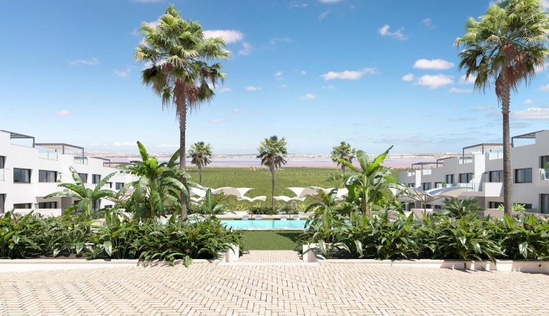 BUNGALOW DE PLANTA ALTA CON 2 DORM. CON VISTAS A LA LAGUNA ROSA EN LOS BALCONES(TORREVIEJA).Vivienda de nueva construcción de planta alta, consta de 2 dormitorios y 2 baños(uno de ellos en-suite), cocina, salón-comedor, terraza y solarium. Se encuentra en un residencial compuesto de 48 apartamentos de 2/3 dormitorios y 2 baños. Descubra la perfecta armonía entre lujo y confort de estas fabulosas viviendas, todas ellas construidas con materiales de alta calidad e impresionantes vistas a la laguna rosa. Hay dos topologías; las plantas bajas con un amplio jardín y las plantas superiores con balcón y solarium. Plantas altas con 3 dormitorios a partir de 295.900.-€. Las zonas comunes son una extensión de su propio oasis privado. Sumérjase en nuestra piscina infinita mientras disfruta de las vistas panorámicas de la laguna rosa, juegue con los más pequeños en el parque infantil o pasee por las zonas verdes ajardinadas.Estratégicamente enclavado, le sitúa a pocos minutos de las playas de Torrevieja, del bullicioso centro comercial Zenia Boulevard, y de una gran variedad de servicios como supermercados, farmacias y restaurantes. La proximidad a campos de golf y la salida de la autopista al aeropuerto de Alicante le aseguran un fácil acceso a todo lo que le gusta.Estas propiedades son más que un hogar; es un estilo de vida que abarca la belleza natural, el confort moderno y la comodidad. Exceptional residential es el lugar perfecto para vivir la vida que siempre ha imaginado. Bienvenido al nuevo residencial, ¡donde cada día es una obra maestra de lujo y serenidad!