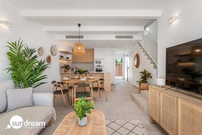 Bungalow de planta alta con solarium privado a la venta en DoloresResidencial con viviendas en planta baja con jardín o planta alta con solárium privado, con 3 dormitorios y 2 baños, están ubicados en Dolores (Alicante), una zona privilegiada de la Costa Blanca, situado junto al Parque Natural El Hondo, rodeado de naturaleza y dotado de todos los servicios.A 25 minutos del aeropuerto de Alicante, cerca de las hermosas playas de Guardamar del Segura y a pocos minutos de los principales campos de golf de la zona. Su excelente ubicación hace del residencial una opción perfecta para aquellos que buscan tranquilidad.Cada vivienda cuenta con su propia plaza de aparcamiento y además un trastero en la mayoría de las unidades. Y con una bonita piscina comunitaria con aseo para relajarse tras un día de trabajo o turismo.Acabados de alta calidad y servicios modernosEstas viviendas están construidas con materiales y acabados de alta calidad. La carpintería exterior es de aluminio con rotura de puente térmico, los baños cuentan con muebles de baño con espejo. La iluminación instalada en toda la vivienda garantiza la eficiencia energética y un ambiente moderno. Armarios empotrados forrados interiormente. Estas características se combinan para crear un entorno de vida cómodo y elegante para usted y su familia.Ubicación privilegiada cerca de los servicios diariosSituadas en las afueras de la encantadora localidad de Dolores, estas viviendas están a un corto paseo de los servicios esenciales del día a día, incluyendo tiendas, restaurantes y servicios locales. Dolores forma parte de la comarca de la Vega Baja del Segura, al sur de la provincia de Alicante, conocida por sus paisajes agrícolas y su relajado ritmo de vida.Cerca de Puntos de InterésPlaya de La Marina: 10 kmPlaya de Guardamar: 10 kmAeropuerto de Alicante: 30 kmAeropuerto Murcia-Corvera: 60 kmCampos de Golf: 10 kmCentros Comerciales: 12 kmPerfecto para disfrutar del estilo de vida de la Costa BlancaCon el clima mediterráneo, hermosas playas a un corto trayecto en coche y varios campos de golf cercanos, esta urbanización ofrece el equilibrio ideal de relajación y ocio. Tanto si busca una casa de vacaciones como una residencia permanente, estas viviendas de nueva construcción en Dolores ofrecen una vida moderna en un lugar sereno y bien comunicado.