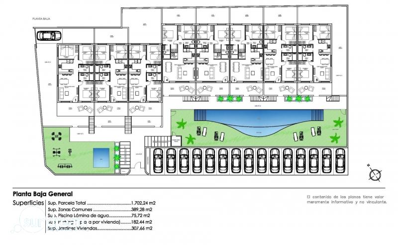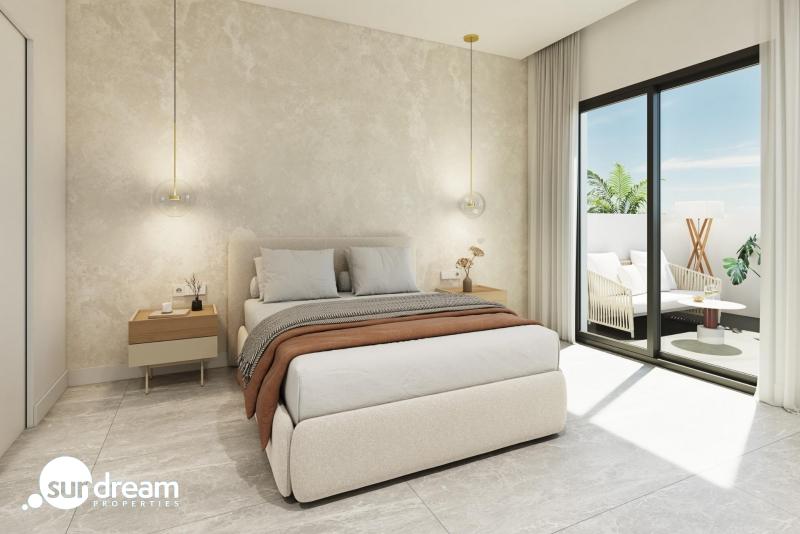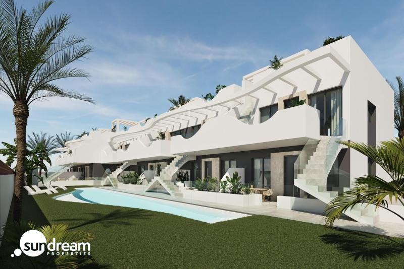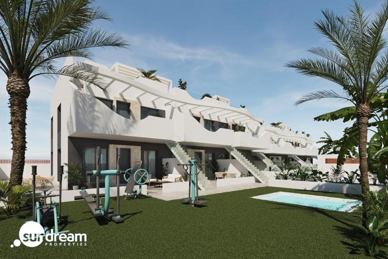 Bungalow de planta baja de 2 dormitorios a la venta en Pilar de la Horadada Bungalow de nueva construcción de 2 dormitorios, 2 baños(uno de ellos en suite), salón-comedor-cocina, jardín delantero y patio trasero.Esta nueva promoción de bungalows de 2 y 3 dormitorios en Pilar de la Horadada destaca por su diseño moderno y su estructura ondulada, que aporta una personalidad única a cada vivienda.El residencial cuenta con una piscina comunitaria y amplias zonas comunes diseñadas para el descanso y el disfrute de toda la familia.Además, la urbanización ofrece gimnasio exterior, jacuzzi comunitario y zona de parking para bicicletas, además de una plaza de parking asignada por cada vivienda con opción de carga de vehículos eléctricos, pensados para ofrecerte el máximo confort y calidad de vida.Interiores Luminosos y de Alta CalidadCada vivienda ha sido diseñada para ofrecer una experiencia de confort y funcionalidad. Los espacios abiertos maximizan la sensación de amplitud y luminosidad, mientras que los acabados en tonos neutros y madera crean un ambiente elegante y acogedor.Dormitorios amplios y luminosos, con el principal ofreciendo acceso a una terraza privada.Cocina de concepto abierto, integrada en el salón para mayor comodidad.Baños modernos con materiales de primera calidad.Pilar de la Horadada – Calidad de Vida en la Costa BlancaSituado en la provincia de Alicante, Pilar de la Horadada es un municipio costero que combina tradición con un ambiente relajado. Es conocido por sus hermosas playas, como la Playa de las Higuericas, con arena dorada y aguas cristalinas del Mediterráneo.Además de su costa, la ciudad cuenta con una vibrante calle principal llena de tiendas, supermercados, restaurantes y plazas pintorescas. Su excelente infraestructura incluye carriles bici, rutas de senderismo y una gran variedad de actividades deportivas.Cercanía a los Principales Puntos de InterésEste residencial ofrece un acceso cómodo a los destinos más importantes de la zona:Playa de Torre de la Horadada – 3 km (5 min en coche).Campo de golf Lo Romero – 5 km (10 min en coche).Centro Comercial La Zenia Boulevard – 15 km (15 min en coche).Aeropuerto de Corvera (Murcia) – 40 km (40 min en coche).Aeropuerto de Alicante – 55 km (55 min en coche).Asegure Hoy su Vivienda en la Costa BlancaNo pierda la oportunidad de adquirir una vivienda de obra nueva en una ubicación excepcional. Contáctenos hoy mismo para más información y para programar una visita.