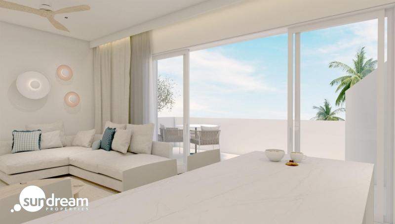 Bungalow en venta obra nueva en Pilar de la Horadada. Bungalow de planta alta de 3 dormitorios con solarium privado a la venta en Torre de la Horadada.Complejo residencial de obra nueva de bungalow apartamentos con piscina comunitaria en Torre de la Horadada situado a 800m de la playa.Todas las propiedades tiene 3 dormitorios, 2 baños, cocina americana con el salón, armarios empotrados y terraza.Todas las propiedades tienen jardines privados y plaza de aparcamiento. Además bungalows en la planta superior tiene solarium privado.Torre de la Horadada se encuentra al sur de Alicante en una hermosa ubicación en la costa.Las hermosas playas de Torre de la Horadada y Mil Palmeras tienen arena fina hermoso paseo marítimo.Hay un montón de restaurantes, bares y tiendas, también deportes acuáticos, buceo y snorkel.Está bien comunicado a sólo 40 minutos de los aeropuertos de Alicante y Murcias Corvera, con grandes centros comerciales y múltiples campos de golf a poca distancia.