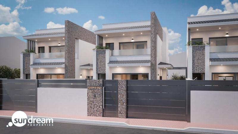 Chalet a la venta con piscina privada en San Pedro del PinatarVista general de las impresionantes villas de nueva construcción en una ubicación privilegiada.Descubra el epítome de la vida de lujo en San Pedro del Pinatar con estas excepcionales villas de nueva construcción. Cada villa ha sido cuidadosamente diseñada con una meticulosa atención al detalle, ofreciendo interiores espaciosos e iluminados por el sol que combinan estilo y confort. Estas villas cuentan con una sala de estar de planta abierta, comedor y cocina, creando un flujo continuo en todo el espacio de vida principal. Con 3 dormitorios, incluyendo una suite principal con vestidor y baño privado, terraza y un amplio solarium. Estas casas son perfectas para aquellos que buscan elegancia y funcionalidad.Espacios exteriores privados y servicios de alta gamaCada villa está situada en una parcela privada de aproximadamente 200 metros cuadrados, lo que proporciona un amplio espacio para la vida al aire libre y la relajación. La propiedad incluye una piscina privada, perfecta para disfrutar de los cálidos días mediterráneos, y una zona de aparcamiento designada. Un amplio solárium privado ofrece un hermoso espacio para tomar el sol, entretenerse o simplemente disfrutar de la tranquilidad del entorno. Estas villas ofrecen un estilo de vida de alta calidad con servicios de primera calidad y comodidades modernas en una de las zonas costeras más deseadas de España.Ubicación privilegiada en San Pedro del PinatarSan Pedro del Pinatar es conocido por sus hermosas playas, su vibrante comunidad y su proximidad a servicios esenciales y actividades de ocio. Situadas a sólo 900 m de la playa y de las instalaciones para deportes acuáticos, estas villas permiten a los residentes disfrutar de toda la belleza natural y las oportunidades recreativas de la costa del Mar Menor. Las villas también están convenientemente cerca de una amplia gama de servicios locales, incluyendo tiendas, restaurantes y bares. Los centros comerciales más grandes están a poca distancia en coche, proporcionando a los residentes un fácil acceso a una variedad de opciones de venta al por menor.Proximidad a puntos de interés claveAeropuerto de Murcia-Corvera: Aproximadamente a 30 km de distancia, ofreciendo cómodas opciones de viajes internacionales y nacionales.Aeropuerto de Alicante: A sólo una hora en coche (unos 85 km), proporcionando acceso a numerosos destinos globales.Varios campos de golf como Lo Romero, Roda Golf o La Serena a poca distancia en coche, perfectos para los entusiastas del golf.Centros comerciales: A 10 minutos en coche del Centro Comercial Dos Mares, que ofrece varias tiendas minoristas, restaurantes y opciones de entretenimiento.Playas del Mar Menor: A sólo 900 m de las villas, estas costas de arena son ideales para relajarse, nadar y realizar actividades acuáticas.Experimente el encanto de San Pedro del PinatarSan Pedro del Pinatar ofrece el encanto de una ciudad costera tradicional española a la vez que todas las comodidades modernas. Su estratégica ubicación cerca del Mar Menor y de la Costa Cálida garantiza un fácil acceso a hermosas playas, servicios de alta calidad y una vibrante cultura local, lo que la convierte en el lugar ideal al que llamar hogar.