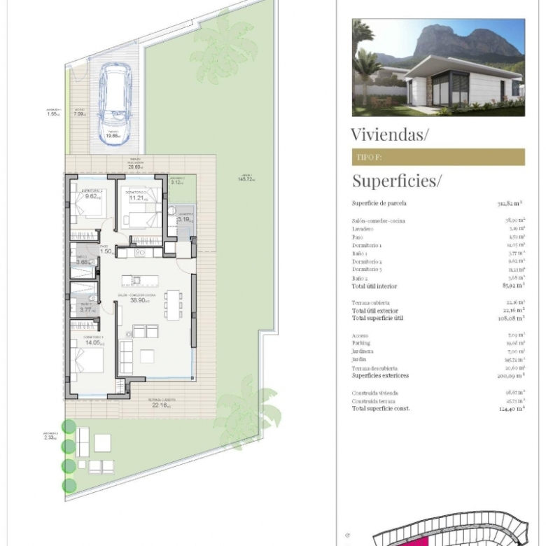 Chalet de nueva construcción en una sola planta a la venta en Polop, Alicante.Esta vivienda es de una planta y consta de 3 dormitorios y 2 baños(uno de ellos en suite), cocina-salón-comedor, lavadero, terraza, jardín y parking dentro de la parcela. Descubra esta exclusiva urbanización de chalets de nueva construcción rodeada de naturaleza en Polop, un encantador pueblo de interior situado en la provincia de Alicante. A sólo 10 km de las animadas playas y la vida nocturna de Benidorm y cerca de la pintoresca localidad de Altea, estas viviendas ofrecen una inmejorable combinación de confort moderno y belleza natural.Un residencial a su medidaEl proyecto consta de 65 villas independientes disponibles en diferentes distribuciones para adaptarse a sus necesidades y presupuesto. Elija entre viviendas de 3 ó 4 dormitorios, con opciones de diseños de una o dos plantas. Muchas de las propiedades están diseñadas en una sola planta, lo que proporciona una mayor accesibilidad y una cómoda experiencia de vida sin necesidad de escaleras.Cada vivienda está cuidadosamente diseñada con amplias terrazas, jardines privados y espacios interiores y exteriores donde disfrutar del clima mediterráneo. También hay disponibles piscinas privadas opcionales para añadir un toque extra de lujo a su nuevo hogar.Ubicación privilegiada con fácil acceso a destinos claveSituada en un apacible entorno natural, la urbanización es ideal para quienes buscan tranquilidad sin renunciar a la comodidad. Los alrededores ofrecen acceso a puntos de interés clave:Playas de Benidorm: 10 km (15 minutos en coche)Playa del Albir: 12 km (20 minutos), famosa por sus aguas cristalinas y su pintoresco paseo marítimoAeropuerto de Alicante: 60 km (45 minutos)Campo de Golf Villaitana: 12 km (15 minutos)Centro Comercial La Marina: 10 km (15 minutos)Características Premium para un Confort ModernoCada villa está equipada con acabados de alta calidad y sistemas de última generación, garantizando el máximo confort, seguridad y sostenibilidad:Ventanas de PVC de doble acristalamiento con aislamiento térmico y solarPuertas delanteras reforzadas para mayor seguridadCocinas totalmente equipadas con placa de inducción, horno, campana extractora y fregadero de acero inoxidableModernos cuartos de baño con elegantes lavabos y grifería de porcelanaPreinstalación de aire acondicionado por conductos con bomba de calorAgua caliente suministrada a través de sistemas aerotérmicos para la eficiencia energéticaComunidad cerrada con cámaras de vigilancia perimetralPolop: La mezcla perfecta de historia y naturalezaPolop de la Marina es una ciudad histórica rodeada de impresionantes paisajes. Su encantador casco antiguo, la Casa-Museo Gabriel Miró y varias rutas de senderismo la convierten en un destino muy solicitado por los amantes de la naturaleza y la historia.Vivir la costa y el campoAdopte un nuevo estilo de vida en estas casas cuidadosamente diseñadas, donde el confort se encuentra con la naturaleza. Disfrute de las vistas panorámicas a través de grandes ventanales que enmarcan el paisaje circundante, creando el equilibrio perfecto entre la vida interior y exterior.¡No pierda la oportunidad de ser propietario de la casa de sus sueños en Polop! Póngase en contacto con nosotros hoy mismo para obtener más información y concertar una visita.