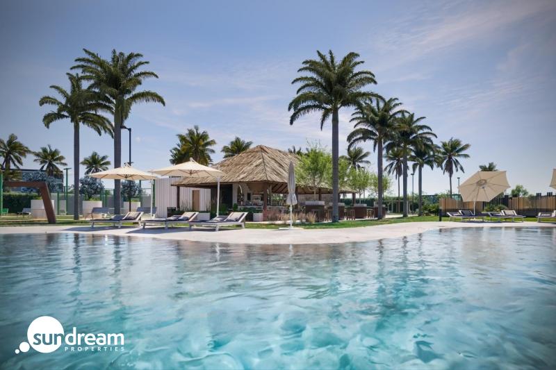 Chalet en venta obra nueva con piscina Torre Pacheco. Chalet de 2 dormitorios con piscina privada y solarium en exclusivo Resort en Torre-PachecoDescubra esta colección limitada de 3 villas independientes de nueva construcción en Roldán, situadas en un prestigioso Resort. Diseñadas en una sola planta para ofrecer el máximo confort y funcionalidad, cada villa ofrece la posibilidad de elegir entre 2 o 3 dormitorios e incluye 2 baños, una piscina privada y un solárium en la azotea.Estas viviendas contemporáneas combinan un elegante diseño interior con exteriores de inspiración mediterránea con elementos de piedra natural y madera. El resultado es una mezcla perfecta de estilo, calidad y comodidad en un entorno tranquilo y bien comunicado.Interiores amplios, luminosos y funcionalesCada villa cuenta con:Salón-comedor diáfano con moderna cocina americanaArmarios empotrados en todos los dormitoriosJardín privado con piscinaSolárium en la azotea ideal para tomar el sol y disfrutar al aire libreDos plazas de aparcamiento privadasPreinstalación de aire acondicionado por conductosCocinas equipadas con armarios altos y bajosLa distribución en una sola planta garantiza una fácil accesibilidad y una distribución práctica en toda la vivienda, lo que hace que estas villas sean ideales tanto para vivir todo el año como para pasar las vacaciones.Ubicación inmejorable en Roldán, MurciaEl Alba Mediterranean Resort es una comunidad residencial cerrada que ofrece una amplia gama de servicios, entre los que se incluyen:Club social con bar y salónPiscina comunitariaPistas de pádelZonas ajardinadas y calles peatonalesSituado a pocos pasos del centro de Roldán, los residentes tienen acceso a supermercados, bancos, restaurantes y cafeterías. La tranquila localidad de Roldán ofrece todos los servicios necesarios para el día a día, conservando al mismo tiempo el encanto de un pueblo tranquilo.Lugares de interés cercanosPlayas del Mar Menor: 15 kmCampo de golf Terrazas de la Torre: 4 kmLa Torre Golf Resort: 6 kmCentro comercial Dos Mares: 25 kmAeropuerto Internacional de Murcia (RMU): 20 kmCentro de Cartagena: 35 kmCentro de Murcia: 36 kmEsta región de Murcia es conocida por su clima templado, su belleza natural y su alta calidad de vida. Gracias a las excelentes conexiones por carretera, se puede llegar a las ciudades, playas y campos de golf cercanos en pocos minutos.La casa de sus sueños al sol le está esperando. Póngase en contacto con nosotros ahora para concertar una visita o solicitar más información.