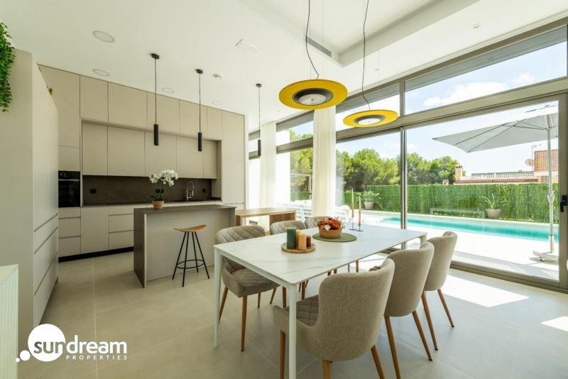 EXCLUSIVA VILLA MODERNA DE NUEVA CONSTRUCCIÓN EN PINAR DE CAMPOVERDEVillas modernas de obra nueva en Pinar de CampoverdeVillas de 1 planta con 3 dormitorios, 3 baños, cocina totalmente amueblada con isla, salón, armarios empotrados, terraza, sótano, jardín privado con piscina privada de 10m X3.5m, con cascada de agua en acero inoxidable, Cocina de verano con isla, instalación eléctrica, fontanería y fregaderoy plaza de aparcamiento.Villas situadas en Pinar de Campoverde (Alicante), rodeado de servicios, instalaciones deportivas, cerca de varios Campos de Golf como Las Colinas y Lo Romero Golf, además de estar a 10 minutos del Mar Menor y playas del Mediterráneo.Las preciosas playas de Torre de la Horadada y Mil Palmeras con paseo marítimo de arena fina se encuentran a 10 minutos en coche.Los aeropuertos de Corvera (Murcia) y Alicante se encuentran a 40 y 55 minutos respectivamente.