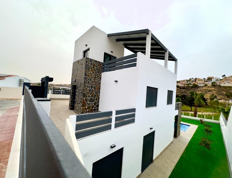 La Marquesa Golf – Villa en Primera Linea con 4 Dormitorios y 4 BañosIncreíble villa con vistas excepcionales al campo de golf La Marquesa, situado en Ciudad Quesada. Esta vivienda vienen con el estándar passivhaus, que garantiza el certificado de energía más alto del mercado (A), aplicable para los Edificios de Consumo Casi Nulo 2020 (ECCN). Cuenta con ascensor en todas las plantas de la villa. La zona exterior está perfectamente diseñada para disfrutar al máximo; amplias terrazas, jardín ajardinado, piscina de 4,5×9 con jacuzzi, solárium con cocina y mucho más.