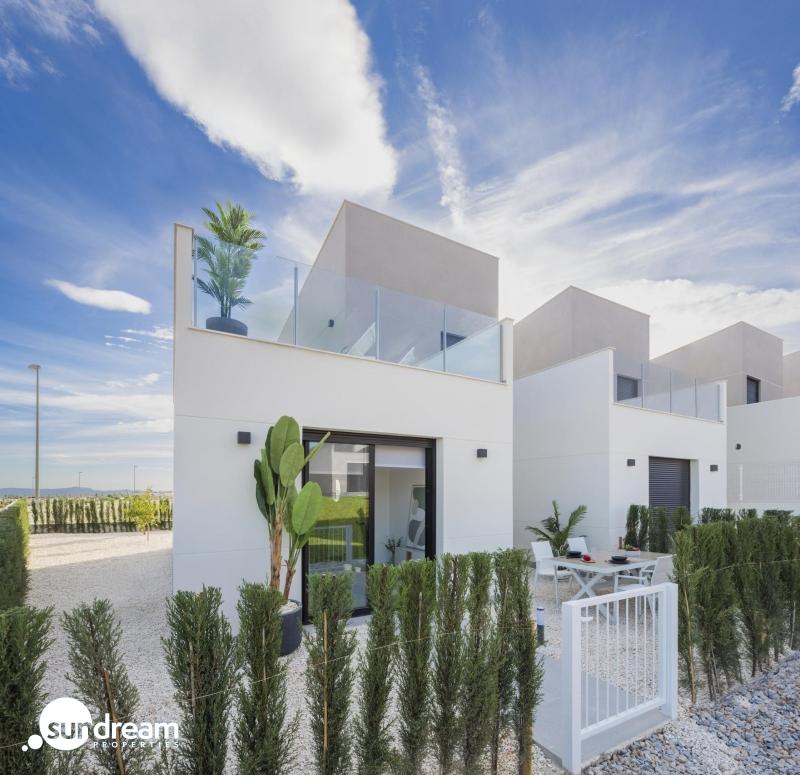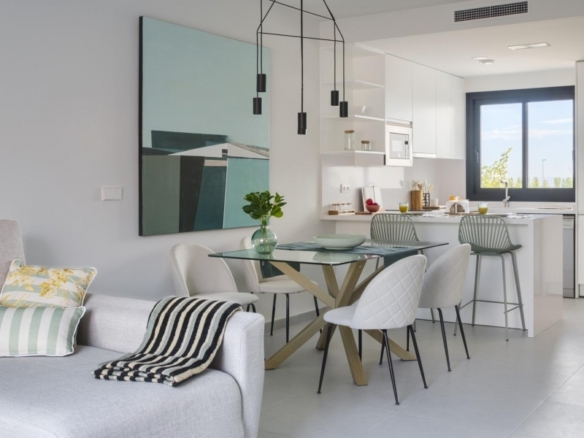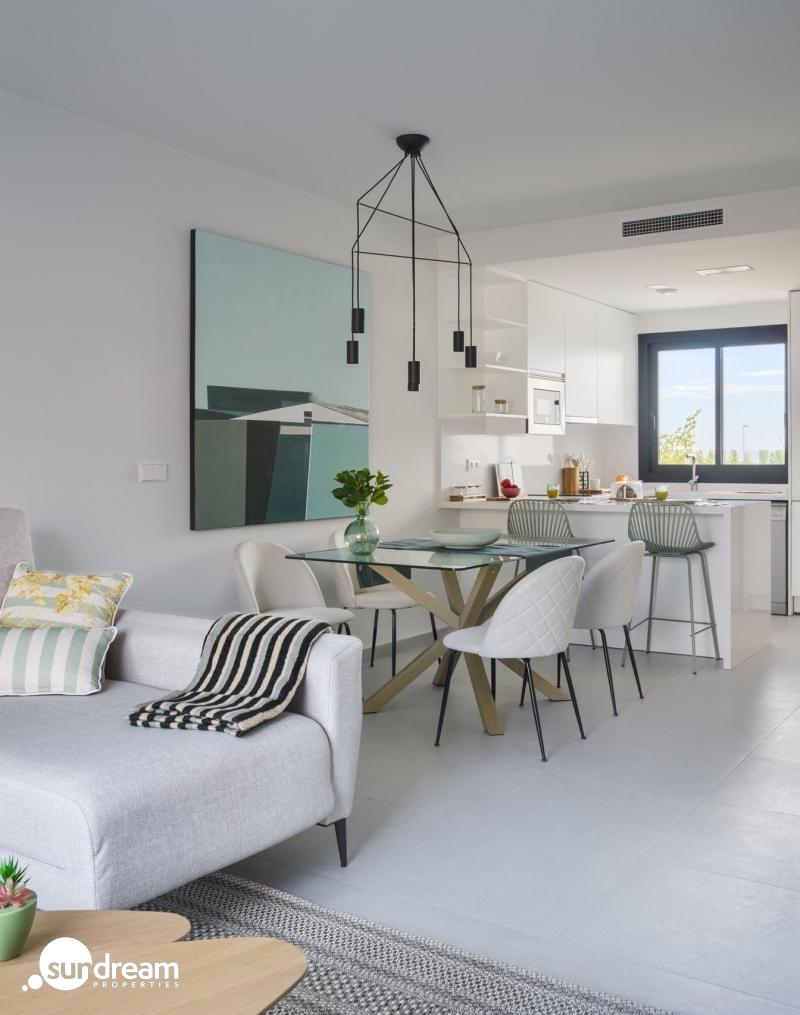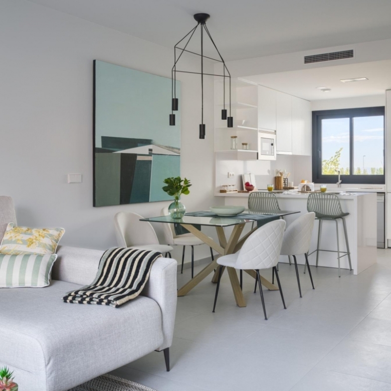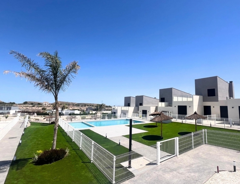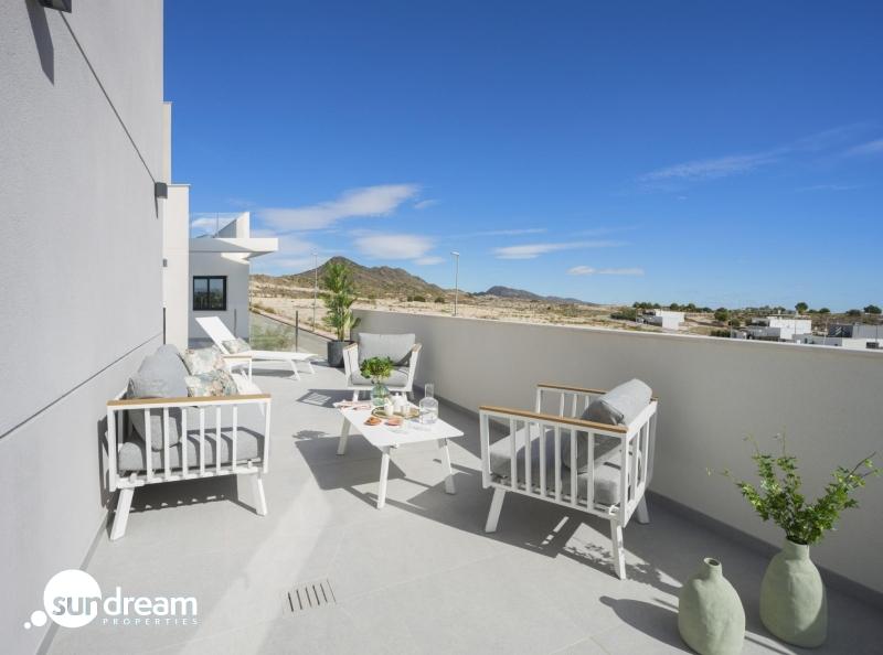 NUEVOS ADOSADOS DE 2 DORMITORIOS EN CAMPO DE GOLF RESORT, MURCIA. Residencial de obra nueva de hermosos adosados en campo de Golf resort, Murcia. Situado en un entorno privilegiado donde podemos vivir tranquilamente, en contacto con la naturaleza y la montaña, conseguimos calidad de vida, aire puro y espacios abiertos. Las hermosas casas adosadas de 1 nivel en Altaona Golf and Country Village son perfectas para abrazar el estilo de vida mediterráneo. Casas soleadas diseñadas con un estilo de vida al aire libre en mente, tiene 2 dormitorios, 2 baños, cocina abierta con zona de estar, gran solarium, jardines delanteros y traseros con espacio para una piscina. Una opción de piscina privada con un coste adicional. Este exclusivo residencial está a tan solo 15 minutos en coche del centro de Murcia capital y a 20 minutos de las playas podrá disfrutar de la tranquilidad y seguridad que ofrece el Campo de Golf que cuenta con 18 hoyos y la comodidad de vivir cerca de todos los servicios. El aeropuerto de Murcias Corvera a solo 15 minutos en coche.