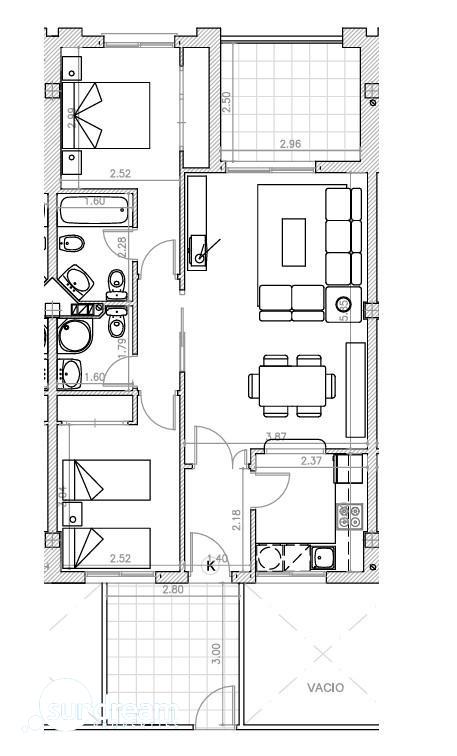 2 dormitorios y 2 baños, incluyendo un dormitorio principal con baño en suite