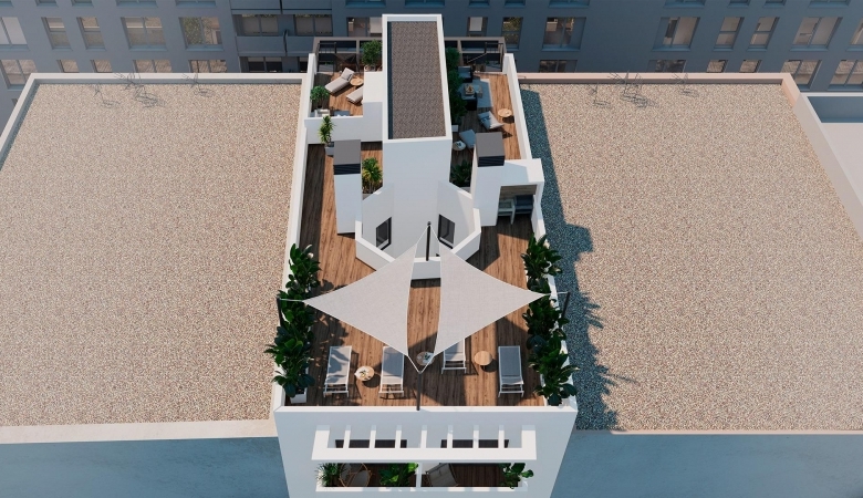 Esta promoción ofrece a sus residentes una piscina comunitaria con zona infantil ubicada en la planta baja, un espacio ideal para refrescarse durante los cálidos días mediterráneos. Además, cuenta con gimnasio, sauna y solárium en la azotea con áreas chill-out rodeadas de vegetación, creando un entorno exclusivo para disfrutar del ocio y el bienestar sin salir de casa.