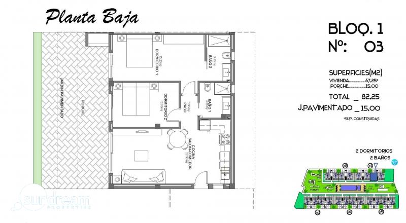 La planta baja en Golf Resort Algorfa que ofrece Sundream Properties forma parte de un exclusivo complejo de 40 bungalows modernos. Diseñada para aquellos que aprecian el lujo, la comodidad y un entorno natural, esta vivienda cuenta con 2 dormitorios y 2 baños, uno de ellos en suite, un salón-comedor con cocina integrada y un jardín privado. Además, cada propiedad incluye garaje, proporcionando comodidad adicional para el estacionamiento y almacenamiento.