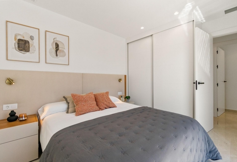 Cada villa ha sido diseñada con atención al detalle y acabados de primera calidad. Las puertas están lacadas en blanco y los armarios empotrados cuentan con cierres magnéticos. Las cocinas están completamente amuebladas y equipadas con electrodomésticos de alta gama, incluyendo frigorífico panelable, microondas, horno, lavavajillas, lavadora, campana extractora y placa de cocción.