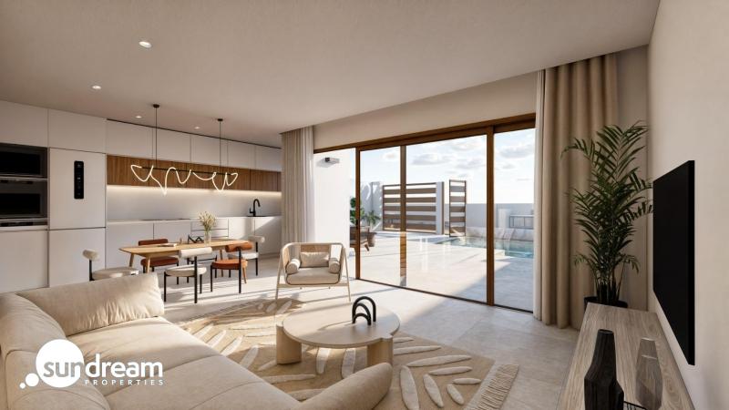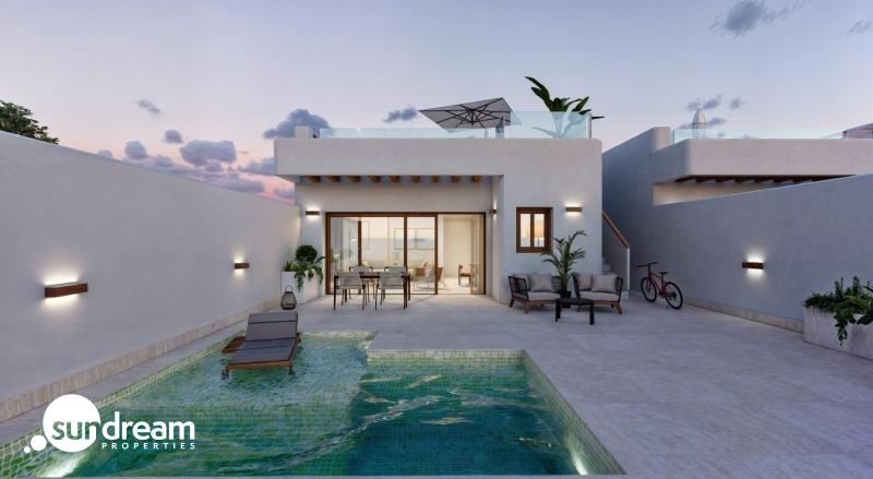 Villa de 3 dormitorios a la venta con piscina privada en Torre-Pacheco, MurciaDescubra la combinación perfecta de diseño moderno, comodidad y ubicación con estos impresionantes chalets de obra nueva en Torre-Pacheco, Murcia. Tanto si busca una residencia permanente, una casa de vacaciones o una inversión inmobiliaria, estos elegantes chalets independientes ofrecen un valor y una comodidad excepcionales en una de las regiones más codiciadas de España.Esta moderna villa de una sola planta cuenta con 3 y 2 baños, diseñadas con una cocina abierta y un amplio salón/comedor. Cada casa está equipada con:Piscina privada: Completa con ducha exterior, sistema de filtración e iluminación LED.Solarium con cocina de verano: Incluye fregadero y preinstalación para lavadora y mini nevera, accesible a través de una escalera exterior.Electrodomésticos de alta calidad: Placa vitrocerámica marca Balay, horno, microondas de columna, frigorífico, campana extractora y lavavajillas integrado.Otros elementos destacados son los sanitarios de porcelana de primera calidad en los baños, los armarios totalmente equipados con puertas lacadas en blanco y la iluminación LED interior y exterior de bajo consumo.Ubicación privilegiada con excelente conectividadSituadas en el encantador pueblo de Torre-Pacheco, estas villas están rodeadas de servicios esenciales como supermercados, bancos, bares y restaurantes. La ubicación ofrece un equilibrio ideal de tranquilidad y accesibilidad:Playas del Mar Menor: A sólo 15 minutos en coche (aprox. 12 km).Aeropuerto Internacional de Murcia: A sólo 20 minutos (aprox. 18 km).Campos de Golf: Torre-Pacheco es famosa por sus galardonados campos de golf, varios de los cuales se encuentran a un corto trayecto en coche de las villas.Compras y entretenimiento: El puerto de Cartagena y su vibrante escena comercial están a 30 minutos (aprox. 26 km), mientras que la ciudad de Murcia, conocida por su cultura y gastronomía, está a unos 35 minutos (aprox. 37 km).Vida elegante en un entorno saludableTorre-Pacheco y los alrededores de la región de Murcia son famosos por su excepcional calidad de vida, que ofrece un saludable clima mediterráneo y abundantes actividades al aire libre. Los modernos interiores de las villas y sus acabados de primera calidad las hacen a la vez elegantes y funcionales, creando un espacio acogedor para la relajación y el entretenimiento.Múdese hoy mismoEstos chalets de nueva construcción en Torre-Pacheco combinan lujo, comodidad y valor en una ubicación inmejorable. No pierda la oportunidad de poseer una propiedad en una de las zonas más saludables y deseables de España. Póngase en contacto con nosotros para concertar una visita o solicitar más información.
