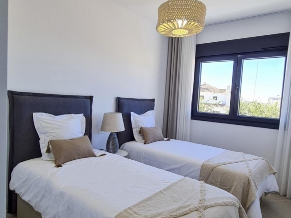 VILLA DE 3 DORMITORIOS A LA VENTA EN SAN PEDRO DEL PINATAR Residencial de obra nueva de villas y adosados en San Pedro del Pinatar, Murcia. Residencial de lujo formado por 16 adosados y villas independientes, todos con piscina privada, terraza, solárium y plaza de parking dentro de la parcela. Cada vivienda cuenta con 3 dormitorios y 2 baños completos, además de un vestidor en el dormitorio principal. Las viviendas han sido diseñadas con un estilo contemporáneo y un concepto abierto, compuesto por una cocina equipada y un salón-comedor. El residencial está situado en San Pedro del Pinatar, Murcia, rodeada de todos los servicios, instalaciones deportivas, cerca de varios campos de golf y a 5 minutos del Mar Mediterráneo y de las playas del Mar Menor. La propiedad cumplirá con los más altos estándares y estará equipada con: Piscina privada con iluminación LED y ducha exterior. Cocina totalmente amueblada y equipada con horno y microondas en columna, lavavajillas y frigorífico empotrados, vitrocerámica y campana extractora. Iluminación LED: en el interior de la vivienda (comedor, cocina, pasillos y baños), así como en las zonas exteriores. Persianas motorizadas en salón y dormitorio principal. Vestidor en dormitorio principal, con estanterías, cajonera, barras de arrastre y espejo. Armarios forrados con cajones. Cuartos de baño completos con mueble de lavabo, inodoro suspendido con cisterna incorporada, espejo, ducha con efecto lluvia y mamparas. Preinstalación de suelo radiante en los baños. Preinstalación de conductos de aire acondicionado. Preinstalación de placas solares. Solárium. Parking dentro de la parcela. La ubicación privilegiada de San Pedro del Pinatar en el Mar Menor y la costa mediterránea atrae a aquellos con un interés en la navegación y los deportes acuáticos, proporcionando amarres en el puerto deportivo y clubes de vela, mientras que las playas y los baños de barro naturales atraen a aquellos que buscan sol, mar y arena seguros. Los beneficios de los baños de barro, típicos de la región, o las tranquilas aguas del Mar Menor, han favorecido el crecimiento de Lo Pagán-San Pedro del Pinatar, que actualmente cuenta con todo tipo de comodidades. Además, cuenta con una excelente ubicación, a sólo 5 minutos del Centro Comercial Dos Mares. El aeropuerto de Murcia/Corvera está a 30 minutos y el de Alicante a una hora en coche.