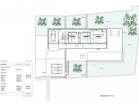 La villa se distribuye en tres plantas que optimizan los espacios para ofrecer comodidad y funcionalidad. En la planta baja se ubica un amplio salón luminoso con acceso directo a la piscina y zona de barbacoa, junto a una cocina abierta con isla y un dormitorio con baño en suite. En la planta superior se encuentran tres dormitorios en suite, cada uno con su propio balcón y vistas al mar. El sótano, de 221 m², incluye trastero, garaje y múltiples posibilidades de uso. Esta distribución inteligente garantiza privacidad, amplitud y un estilo de vida moderno.