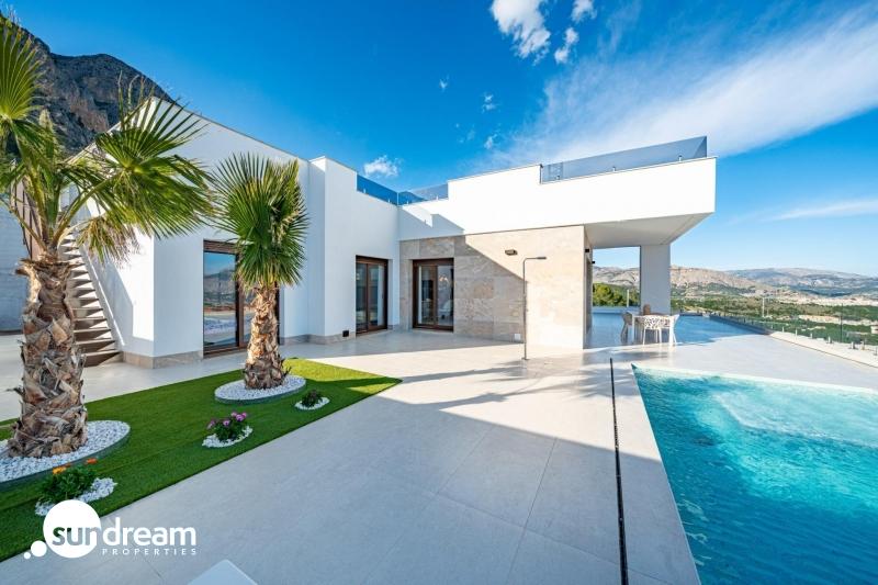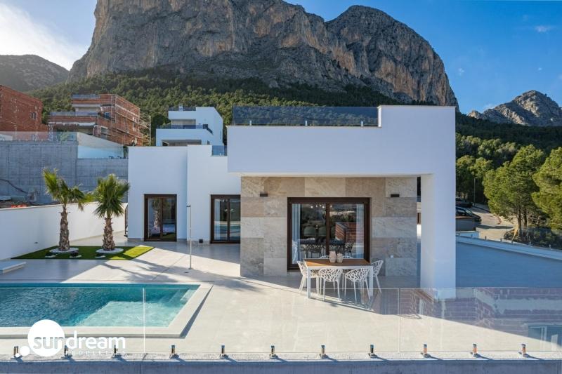Villa de nueva construcción de una planta y piscina privada en Polop La villa es de una planta y consta de 3 dormitorios, 3 baños, salón-comedor-cocina, galeria, porche, jardín, piscina privada y parking dentro de la parcela. Solarium opcional.Descubra estas exclusivas villas de nueva construcción en Polop, situadas en amplias parcelas a partir de 351 m². Estas casas ofrecen una mezcla perfecta de diseño moderno, confort e impresionantes vistas al mar. Cada villa cuenta con una piscina privada de 7×3 m con zona para tomar el sol, una amplia terraza y porche, y aparcamiento privado, lo que la convierte en el refugio ideal para quienes buscan tranquilidad y lujo.Acabados de alta calidad y eficiencia energéticaEstas villas están construidas con materiales de primera calidad y acabados modernos, que garantizan el confort y la eficiencia energética:Persianas motorizadas en salón, cocina y dormitorios.Suelo radiante en todos los baños.Preinstalación de aire acondicionado por conductos para mayor comodidad durante todo el año.Jardín paisajista de estilo mediterráneo, diseñado para un bajo mantenimiento.Puerta de entrada de seguridad reforzada para mayor tranquilidad.Sistema aerotérmico para el suministro de agua caliente.Tres paneles solares fotovoltaicos, que contribuyen a un certificado de eficiencia energética con calificación A.Ubicación privilegiada en Polop, cerca de la costaPolop es una encantadora ciudad mediterránea en la comarca de la Marina Baja, al noreste de Alicante. Conocida por su rica historia, su vibrante gastronomía y su impresionante entorno natural, la ciudad ofrece un estilo de vida tranquilo sin dejar de estar cerca de la costa.Puntos de interés cercanos:Polop a Benidorm – 15 minutos en coche (famoso por sus playas, tiendas y vida nocturna).Polop a Altea – 15 minutos en coche (famosa por su casco antiguo y su puerto deportivo).Polop a Alicante ciudad – 30 minutos.Aeropuerto Internacional de Alicante – 40 minutos.La Nucía – 5 minutos (famosa por sus instalaciones deportivas de clase mundial).Playa más cercana – 8 km.La combinación perfecta de naturaleza y comodidadCon fácil acceso a la autopista AP-7, los residentes disfrutan de rápidas conexiones con las principales ciudades de la Costa Blanca. Polop también ofrece pintorescas rutas de senderismo, por lo que es una excelente opción para los amantes de la naturaleza y entusiastas del aire libre.¡Asegúrese la casa de sus sueños hoy mismo! Póngase en contacto con nosotros para obtener más información o para programar una visita.