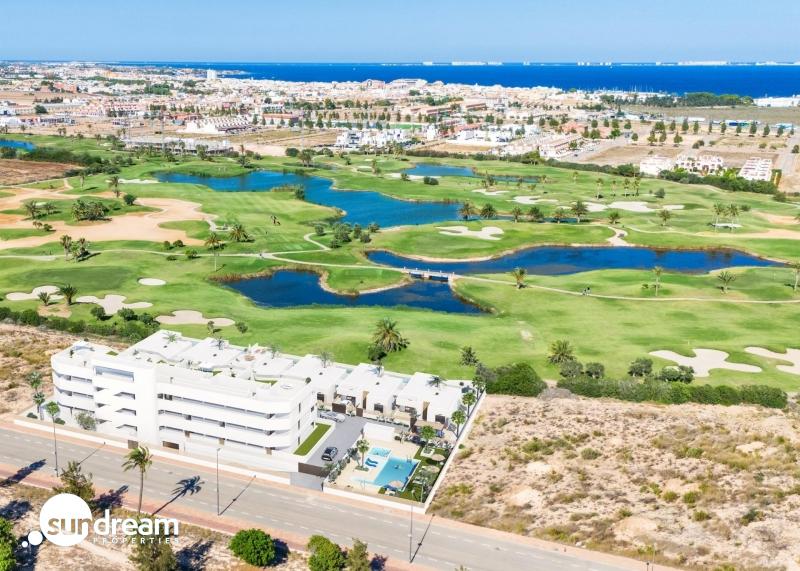 VILLA DE NUEVA CONSTRUCCIÓN EN UNA SOLA PLANTA DE 3 DORM. EN LOS ALCAZARESEl complejo residencial cuenta con una selección de 16 modernos apartamentos de 2 y 3 dormitorios, junto a 6 exclusivas villas de 3 dormitorios. Cada vivienda está diseñada para combinar la estética contemporánea con materiales de alta calidad y diseños funcionales. Para aquellos que buscan un toque de lujo, existe la opción de añadir un solarium por un suplemento. Su nuevo hogar no sólo será elegante, sino que también ofrecerá impresionantes vistas al cercano campo de golf y al sereno Mar Menor.La vivienda consta de 3 dormitorios y 2 baños(uno de ellos en suite), cocina-salón-comedor, piscina privada y jardin.Los Alcázares es un lugar idílico para aquellos que buscan invertir en una nueva propiedad residencial en la Costa Cálida. A sólo 25 minutos del aeropuerto de Murcia y aproximadamente 55 minutos del aeropuerto de Alicante, esta zona está convenientemente conectada por autopista con las principales ciudades como Cartagena, Murcia y Alicante, así como con otras hermosas playas a lo largo de la Costa Cálida y Costa Blanca.Situado directamente en primera línea de un prestigioso campo de golf , conocido por sus lagos entrelazados y su exuberante vegetación, este lugar es un paraíso para los golfistas. El campo cuenta con obstáculos de agua en 16 de sus 18 hoyos, proporcionando desafíos únicos y juego estratégico para todos los niveles de habilidad. Además, la propiedad cuenta con acceso directo a pie al centro de la ciudad, lo que permite a los residentes experimentar la belleza tranquila de la zona, mientras que tener acceso a los servicios locales.El Mar Menor, la laguna de agua salada más grande de Europa, es una de las principales atracciones de la región, con 170 km² y cinco encantadoras islas. Sus aguas cálidas y tranquilas y su suave oleaje lo convierten en un destino ideal para nadar y practicar una gran variedad de deportes acuáticos, tanto para los amantes de la naturaleza como para los aventureros.Esta exclusiva urbanización de Los Alcázares no es sólo una vivienda, sino un estilo de vida que combina el lujo con la belleza natural de la Costa Cálida. Tanto si es un ávido golfista, un entusiasta de los deportes acuáticos, o simplemente busca un refugio costero sereno, esta ubicación ofrece una oportunidad única para disfrutar de lo mejor de la vida mediterránea.