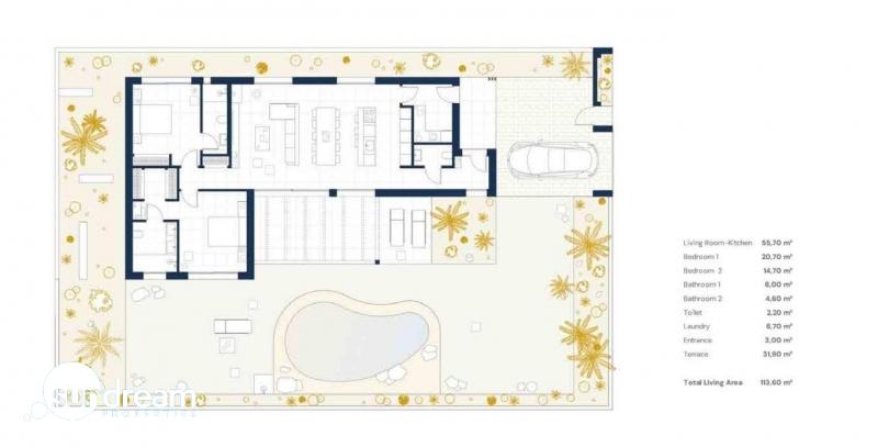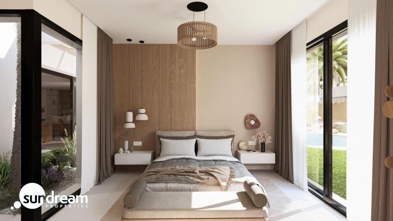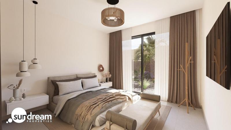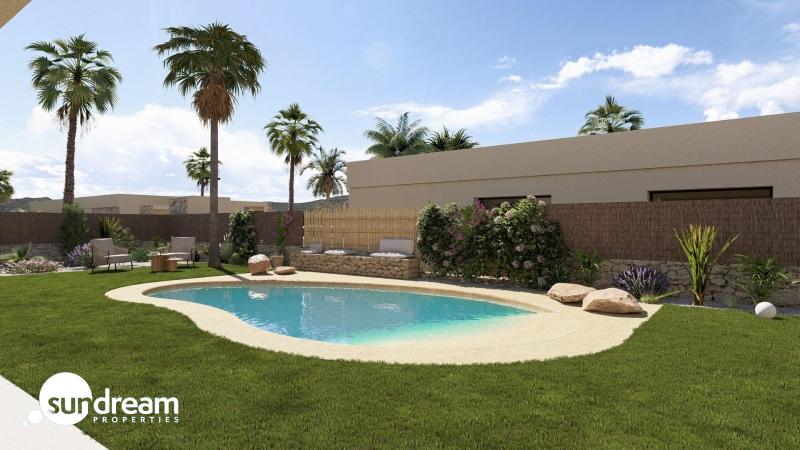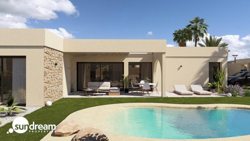 Villa independiente en una sola planta con 2 dormitorios y piscina privada a la venta en Resort de Murcia.Ubicación privilegiada en un complejo de golf cerca de la ciudad de MurciaDescubra esta exclusiva colección de villas independientes de nueva construcción situadas en el prestigioso complejo Altaona Golf Resort en Murcia. Ubicada en un entorno seguro y tranquilo, rodeada de naturaleza y de un campo de golf de 18 hoyos, esta comunidad residencial ofrece el equilibrio perfecto entre tranquilidad y accesibilidad. Altaona Golf se encuentra a solo 15 km del centro de Murcia, donde encontrará centros comerciales, restaurantes, colegios y servicios médicos, mientras que las playas de la Costa Cálida están a solo 20 km. El aeropuerto de Murcia-Corvera está convenientemente situado a 15 km del complejo, lo que lo convierte en un lugar ideal tanto para vivir de forma permanente como para pasar las vacaciones.Diseño moderno de una sola planta con jardín y piscina privadosEstas elegantes villas están diseñadas en una sola planta para ofrecer el máximo confort y funcionalidad. Los compradores pueden elegir entre 2, 3 o 4 dormitorios y 2 o 3 baños, además de un aseo para invitados. Cada vivienda cuenta con una cocina y una sala de estar diáfanas que conectan a la perfección con la terraza exterior y el jardín privado con piscina. La parcela incluye una plaza de aparcamiento privada, lo que garantiza la comodidad y la privacidad.Viviendas energéticamente eficientes con características de alta calidadTodas las villas cuentan con un certificado energético de clase A, lo que garantiza una excelente eficiencia energética y bajos costes de funcionamiento. Las propiedades incluyen aire acondicionado por conductos con bomba de calor en toda la casa, excepto en los baños, y calefacción eléctrica por suelo radiante en el salón y los baños con termostatos independientes por zonas. Un sistema de ventilación mecánica renueva el aire de las cocinas, los baños, el lavadero y el aseo de invitados, mejorando el confort interior.La cocina está equipada con campana extractora y placa de inducción eléctrica. La iluminación LED está incluida en el salón, el pasillo y las zonas exteriores, mientras que el resto de habitaciones están preparadas para que el propietario personalice la iluminación. Los dormitorios están equipados con puntos de carga USB para mayor comodidad.Tecnología domótica y comunidad seguraCada villa incluye un sistema de videoportero, domótica con dos interruptores inteligentes y acceso motorizado para vehículos a la comunidad cerrada. El jardín privado se entrega ajardinado con un sistema de riego por goteo y una atractiva piscina privada, ideal para disfrutar del clima mediterráneo durante todo el año.Distancias a puntos de interés claveCampo de golf Altaona 0,1 kmCentro de la ciudad de Murcia 15 kmPlayas de Los Alcázares y Mar Menor 20 kmAeropuerto de Murcia Corvera 15 kmCentros comerciales y servicios 10 kmHacienda Riquelme Golf Resort 12 kmSu nuevo estilo de vida en Altaona Golf le esperaDisfrute del golf, la naturaleza, la seguridad y el confort moderno en uno de los complejos turísticos más atractivos de la región de Murcia. Póngase en contacto con nosotros hoy mismo para recibir más información o concertar una visita a estas hermosas villas de nueva construcción.Dirección
