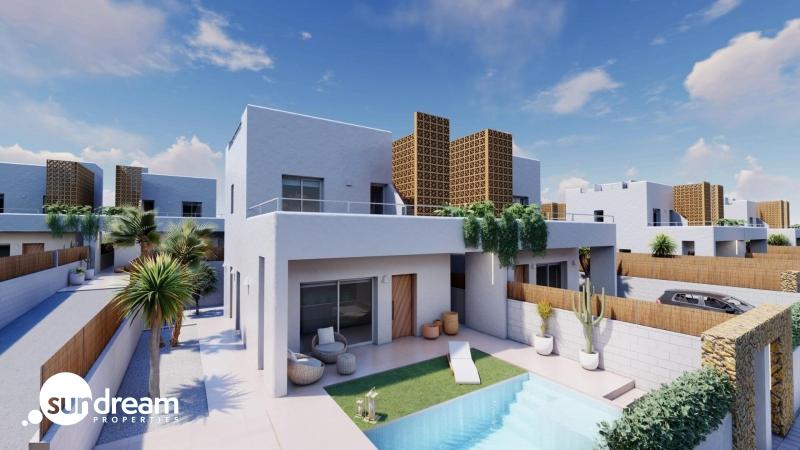 VILLA INDEPENDIENTE DE NUEVA CONSTRUCCIÓN DE 3 DORM. EN PILAR DE LA HORADADA.villas de obra nueva en Pilar de la Horadada.El interior de las villas constan de 3 dormitorios, 3 baños en suite, amplio salón de planta abierta con cocina todo situado en dos plantas.Los exteriores disponen de un amplio jardín con piscina privada y plaza de aparcamiento.Villas de Obra Nueva donde encontrará el mejor estilo mediterráneo adaptado al diseño moderno. Residencial formado por 17 villas situadas en Pilar de la Horadada, rodeadas de todos los servicios que necesitas y a pocos minutos de la playa.Pilar de la Horadada es un típico pueblo español situado en la parte más meridional de la Costa Blanca.La gran calle principal tiene supermercados, muchas tiendas, restaurantes y bares y algunas plazas encantadoras. Las hermosas playas de Torre de la Horadada y Mil Palmeras con arena fina y paseo marítimo está a sólo 5 minutos. En Pilar de la Horadada también hay una red de carriles bici y de senderismo bien desarrollada, y también hay una gran oferta de diversas actividades deportivas. El campo de golf Lo Romero, de 18 hoyos, se encuentra a un corto trayecto en coche.Los aeropuertos de Corvera (Murcia) y Alicante se encuentran a 40 y 55 minutos respectivamente.