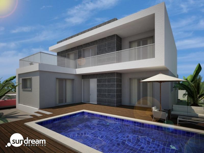 VILLA INDEPENDIENTE MODERNA DE 3 DORM. DE NUEVA CONSTRUCCIÓN EN BENIJOFAR(ALICANTE). Villas de obra nueva ubicadas en Benijófar.Es una villa de estilo moderno en dos plantas. La planta baja consta de amplio salón-comedor con cocina americana, 1 dormitorio y 1 baño . En la planta primera tenemos dos dormitorios ,1 baño, y una amplia terraza donde disfrutar del sol. Villa construida en parcela privada con terraza, zona de aparcamiento, piscina privada, jardín de estilo mediterráneo con estupendas vistas. La casa también cuenta con aire acondicionado frío / calor, video portero y puerta blindada. Benijofar es un pueblo encantador con una iglesia encantadora y todos los servicios como supermercados, farmacias, bancos, restaurantes y parque natural ubicado muy cerca de las villas. Hay varios campos de golf cerca, así como parques acuáticos en las cercanías de Rojales y Torrevieja. Benijófar situado a pocos minutos de la N-332 y AP-7. A tan solo 30 minutos del aeropuerto de Alicante, a 10 minutos de las playas de Guardamar y Torrevieja.