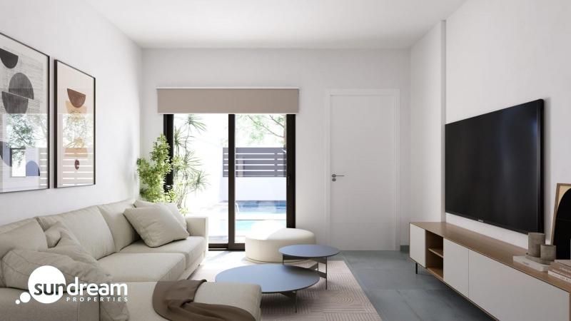 Villa pareada de nueva construcción con 2 dormitorios y piscina privada en Torre PachecoViviendas contemporáneas en una comunidad turística mediterránea en crecimientoEsta nueva promoción consta de 16 exclusivas casas adosadas y pareadas, situadas en El Alba Mediterranean Resort, en Torre Pacheco. Diseñadas en una sola planta, estas modernas viviendas ofrecen una combinación perfecta de comodidad, funcionalidad y vida al aire libre mediterránea.El Alba Resort es una zona residencial emergente rodeada de paisajes abiertos y campos de golf, a poca distancia de la localidad de Roldán, donde encontrará supermercados, restaurantes, bancos y servicios cotidianos. El complejo ya cuenta con un club social con piscina y restaurante, y actualmente se está desarrollando una zona comercial, lo que añade más comodidad y valor a la ubicación.Vivienda de una sola planta con jardín privado y soláriumCada propiedad cuenta con 2 dormitorios y 2 baños, uno de ellos en suite, con una cocina abierta conectada a un luminoso salón. La distribución está cuidadosamente diseñada para maximizar la luz natural y crear una conexión perfecta entre los espacios interiores y exteriores.Todas las viviendas incluyen:Cocina amueblada y equipada con electrodomésticosBaños con muebles, espejos, iluminación y mamparas de duchaArmarios empotrados con cajones en los dormitoriosPreinstalación de aire acondicionado por conductosIluminación LED interior y exteriorTres paneles solares fotovoltaicos con una capacidad de 1,5 kW por propiedadLas zonas exteriores están diseñadas para disfrutar durante todo el año, con un jardín privado con piscina, una terraza y un gran solárium privado con cocina de verano, ideal para comer al aire libre y relajarse bajo el sol.Características de calidad diseñadas para la comodidad y la eficienciaEstas viviendas están construidas con interiores elegantes y funcionales, centrados en la eficiencia energética y la vida moderna. La parcela cuenta con una plaza de aparcamiento privada, lo que garantiza la comodidad y la seguridad.La combinación de paneles solares, aislamiento de calidad y diseño inteligente proporciona una vivienda energéticamente eficiente, ideal para vivir de forma permanente, para uso vacacional o como inversión para alquilar.Excelente ubicación cerca de campos de golf, playas y aeropuertosCentro de la ciudad de Roldán a 2 kmPlayas del Mar Menor a 15 kmPlayas del mar Mediterráneo a 20 kmLa Torre Golf Resort a 5 kmTerrazas de la Torre Golf a 6 kmAeropuerto de Murcia Corvera a 18 kmCiudad de Cartagena a 30 kmEsta ubicación estratégica permite un fácil acceso a campos de golf, playas, servicios y conexiones de transporte, al tiempo que se disfruta de un entorno residencial tranquilo.Una inversión inteligente en la Costa CálidaEstas casas adosadas y pareadas en El Alba Mediterranean Resort ofrecen una excelente oportunidad para adquirir una propiedad moderna con piscina privada en una zona de rápido crecimiento de Torre Pacheco.Póngase en contacto con nosotros hoy mismo para recibir más información o concertar una visita a estas exclusivas viviendas de nueva construcción.