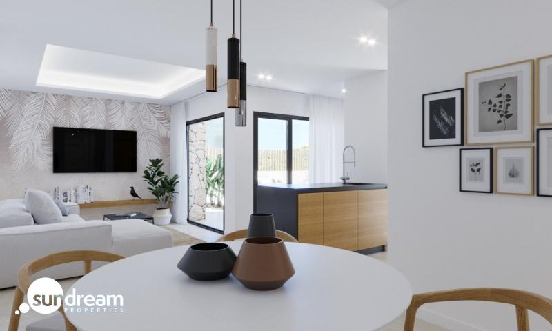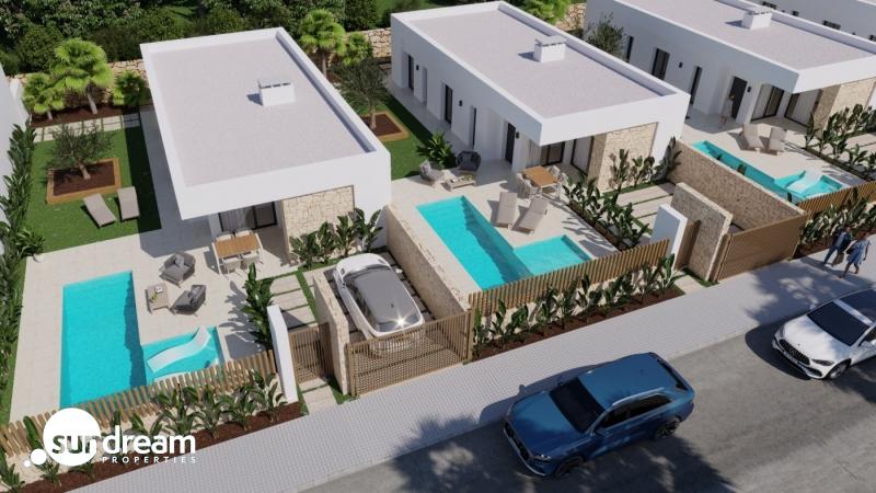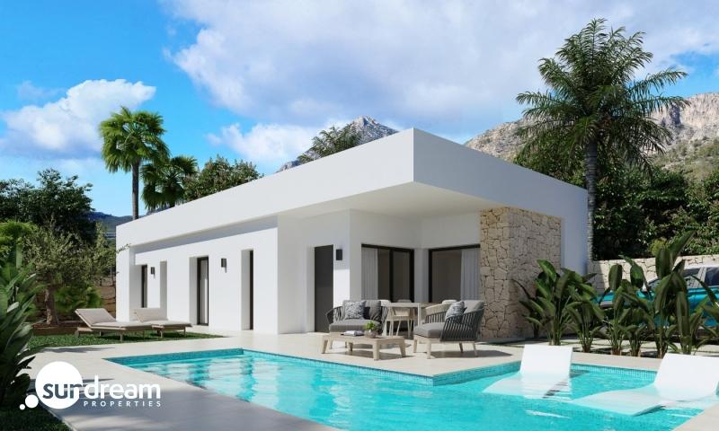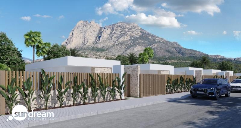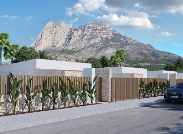 VILLAS EN BALCON DE FINESTRAT Villas de obra nueva en una ubicación privilegiada de Finestrat, colindando con el río Alfarelles de la Tapiada en uno de sus lados, la famosa montaña del Puig Campana a su espalda y el campo de golf del Puig. La primera fase de este residencial consta de 16 villas independientes de una sola planta. Varios modelos de diferentes tipologías, viviendas de autor, piscinas privadas, piedra local, excepcional difusión de la luz natural, óptima eficiencia energética, perfecta integración del espacio interior y exterior, son las características de la innovadora arquitectura del Resort, donde la naturaleza y el confort se funden con el diseño más innovador. Las sólidas credenciales medioambientales son también una prioridad para nosotros. Estas magníficas villas disponen de 3 dormitorios, con armarios empotrados, 2 baños (uno de ellos en suite), un salón-comedor abierto con una cocina totalmente equipada, una galería, vestíbulo con armario, aire acondicionado por conductos, jardín y piscina privada, plaza de aparcamiento. El complejo incorpora instalaciones de eficiencia energética como sistemas de aerotermia o la energía solar, para conseguir un alto rendimiento energético durante todo el año. La mínima densidad de edificación ha sido una constante en todo el proyecto, con el objetivo de que cada vivienda conviva con su entorno y se integre de forma natural en el privilegiado entorno que la rodea. Este exclusivo residencial ofrece sistemas de seguridad y privacidad de primera calidad en cada vivienda, basados en 4 puntos principales: – Existencia de 1 entrada y 1 salida, ambas vigiladas las 24 horas. – Perímetro limitado únicamente por el río Alfarelles de la Tapiada, la pinada circundante y sus propias calles internas; lo que significa que el acceso para los propietarios es totalmente privado y todas las propiedades pertenecen al complejo residencial. Todas las villas están diseñadas y construidas con cámaras de seguridad y sistemas de alarma privados (opcionalmente conectados a la centralita del resort). El resort está equipado con su propio vehículo de seguridad que vigila el sector las 24 horas del día. Un lugar situado entre la montaña y el mar y un verdadero paraíso para los amantes de la tranquilidad y los deportes al aire libre. Además, a sólo 5 minutos en coche de la playa de Benidorm.
